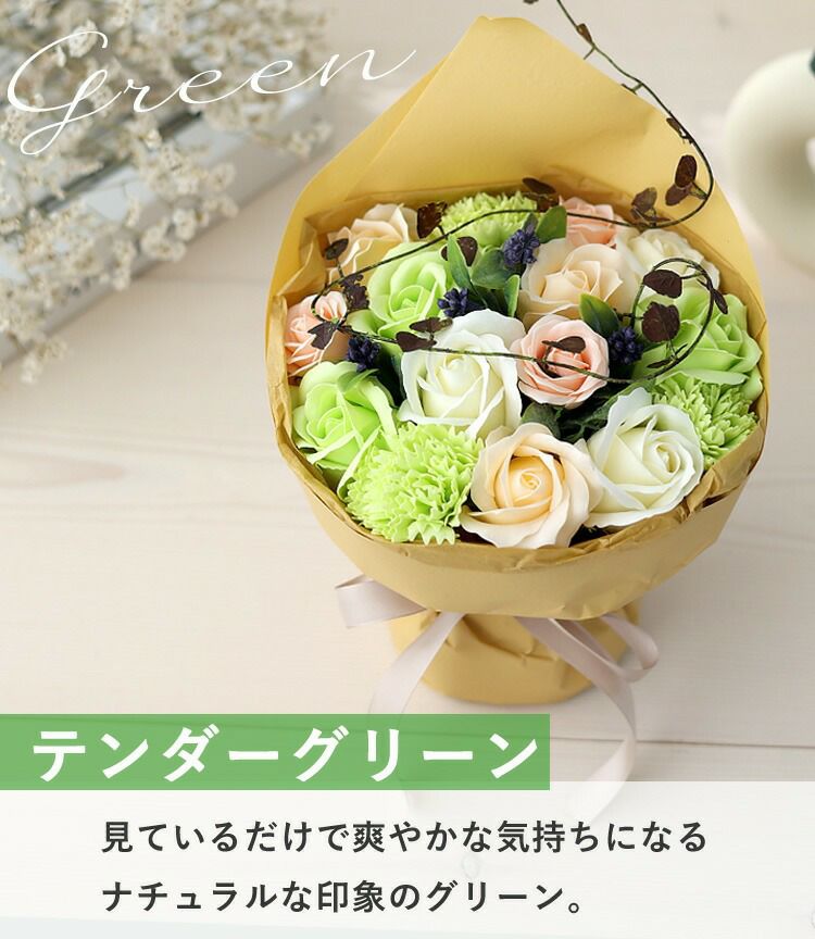他の画像を見る 即日発送 送料無料 誕生日 ソープフラワー お祝いにも♪見て&香りで楽しむブーケ! ソープフラワー 花束 スタンドスイートシャボン 14輪ブーケ 選べる 5カラー 当店特別価格 ¥ 5,800 税込 詳細を見る お気に入りに登録する