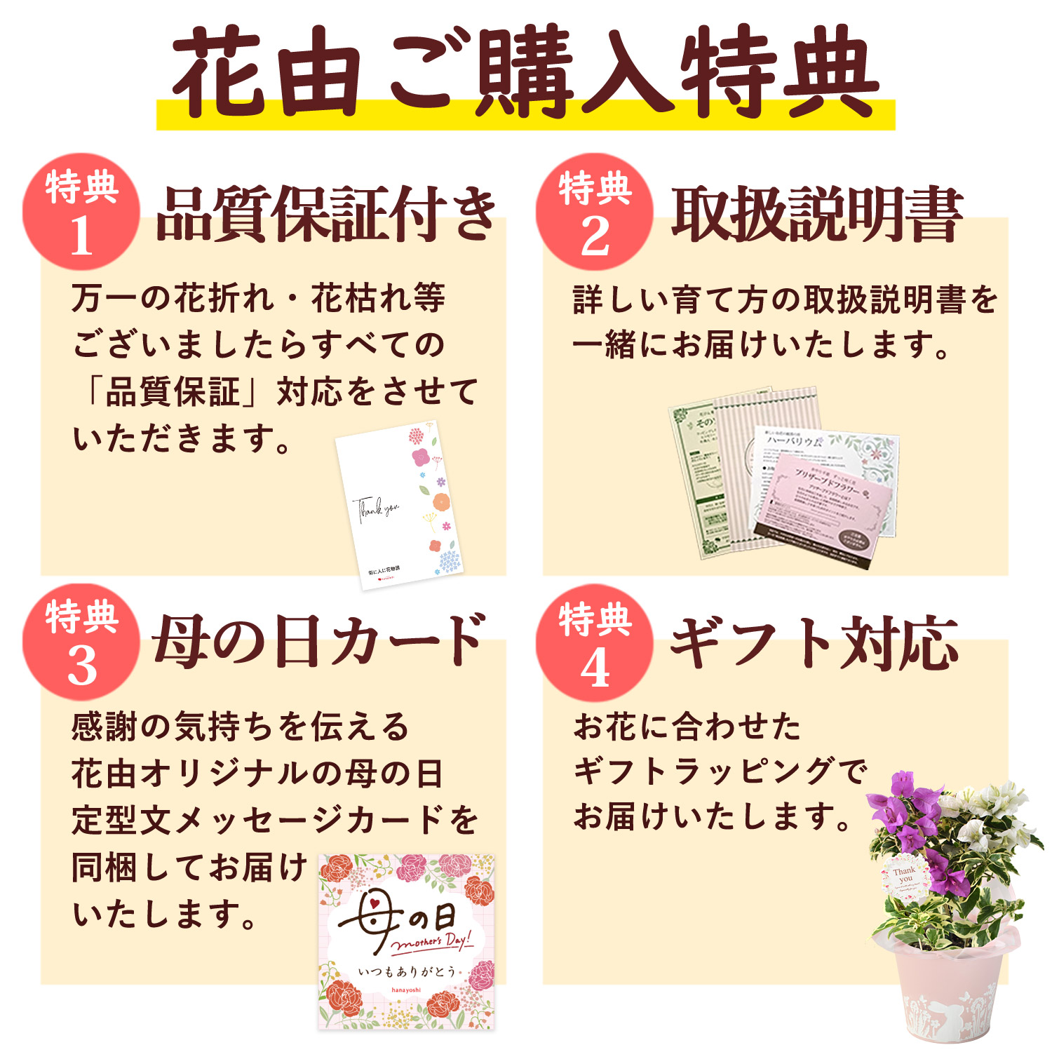 花由オリジナル母の日カード/取扱説明書/品質保証付きショップカード