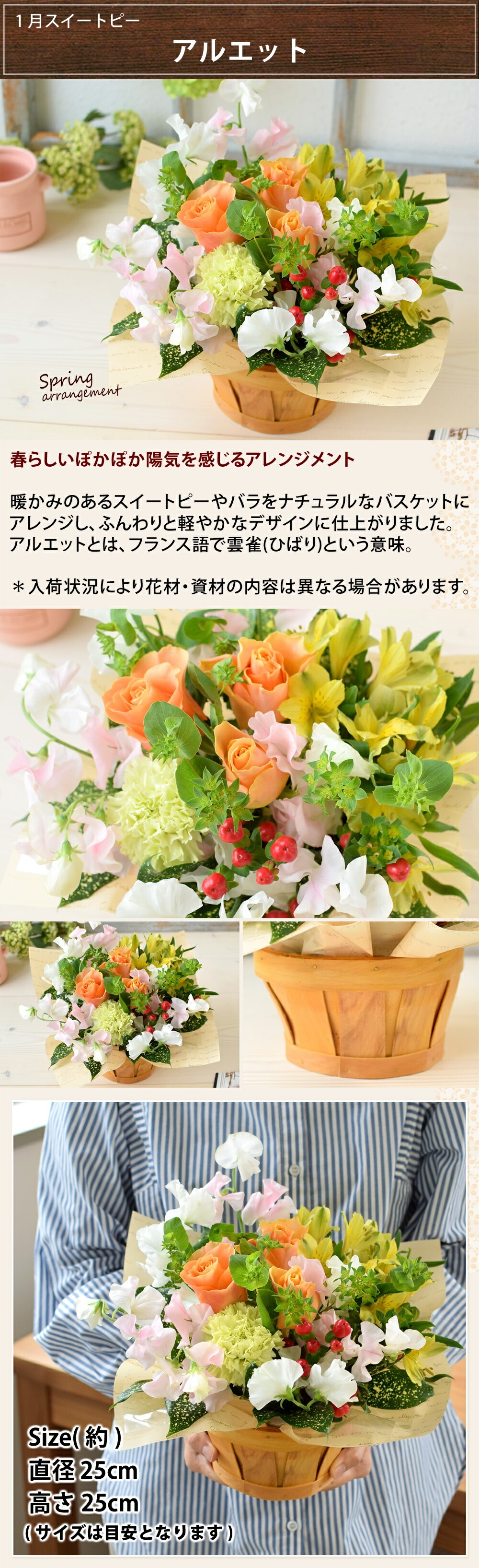 誕生花を使ったアレンジメント 1月 スイートピー 誕生月の生花アレンジ 「アルエット」