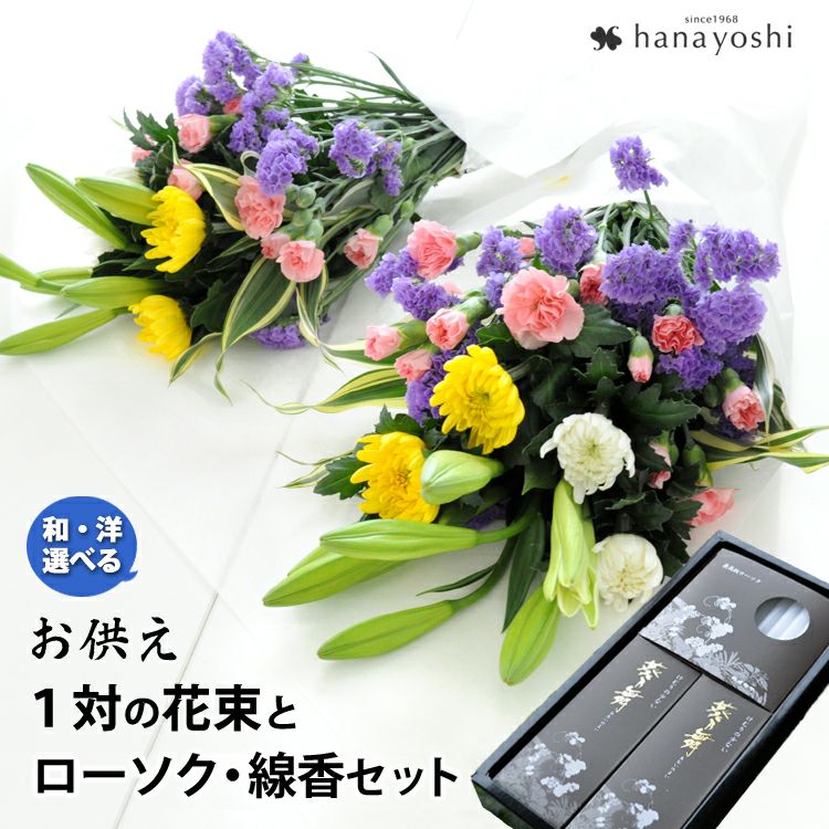 1対〈一対〉の花束〈2束〉&ローソク・線香のセット お供え お盆 新盆 初盆 お彼岸