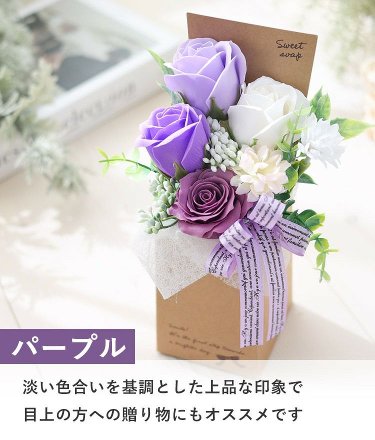 他の画像を見る 即日発送 送料無料 誕生日 ソープフラワー お祝いにも♪見て&香りで楽しむブーケ! ソープフラワー 花束 スイートシャボン 9輪ブーケ 選べる 5カラー 当店特別価格 ¥ 3,780 税込 詳細を見る お気に入りに登録する