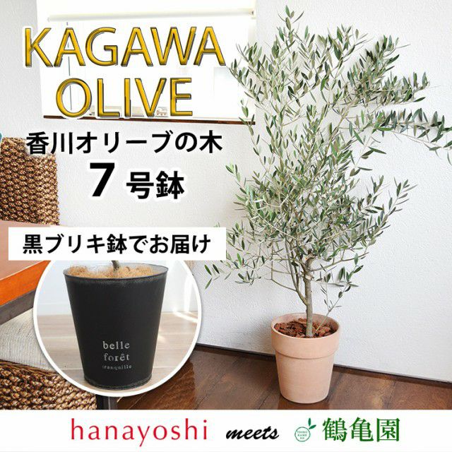 鶴亀園さんの香川オリーブの木 7号鉢 <黒ブリキ鉢でお届け>