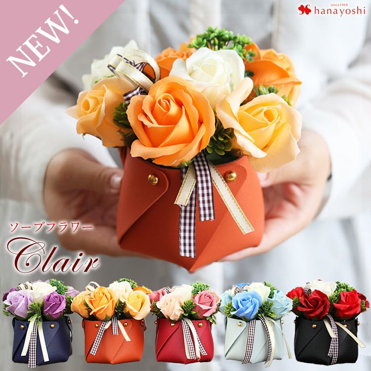 人気急上昇!ソープフラワー お誕生日・お祝い・プレゼントなどに人気 【土日も発送】 即日発送対応 レザーバスケット クレール ソープフラワー 選べる5カラー
