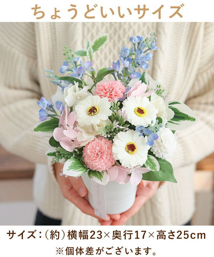お花の大きさは生花と変わらない大きさでとっても華やかな上に枯れないので、