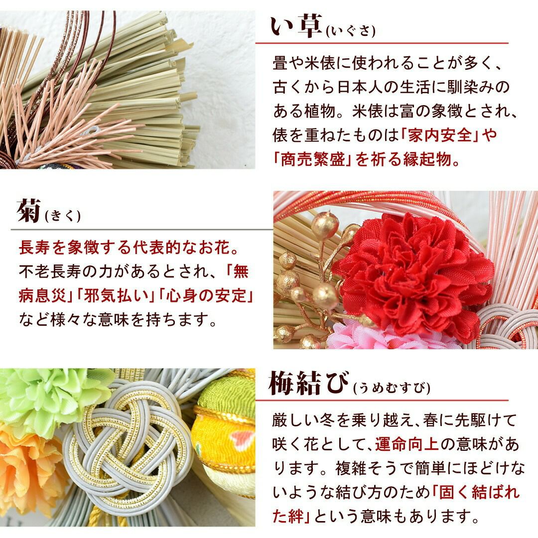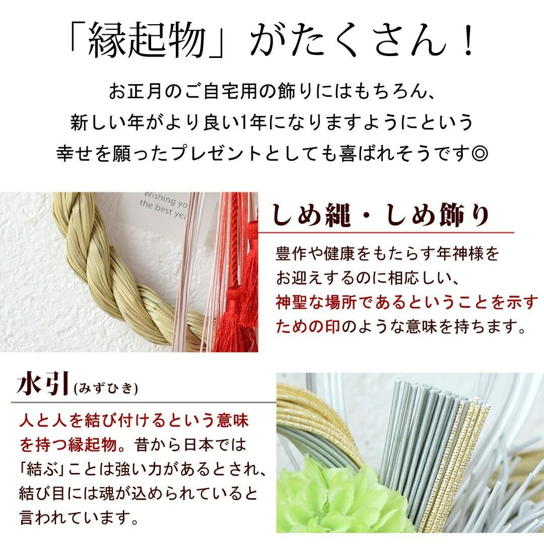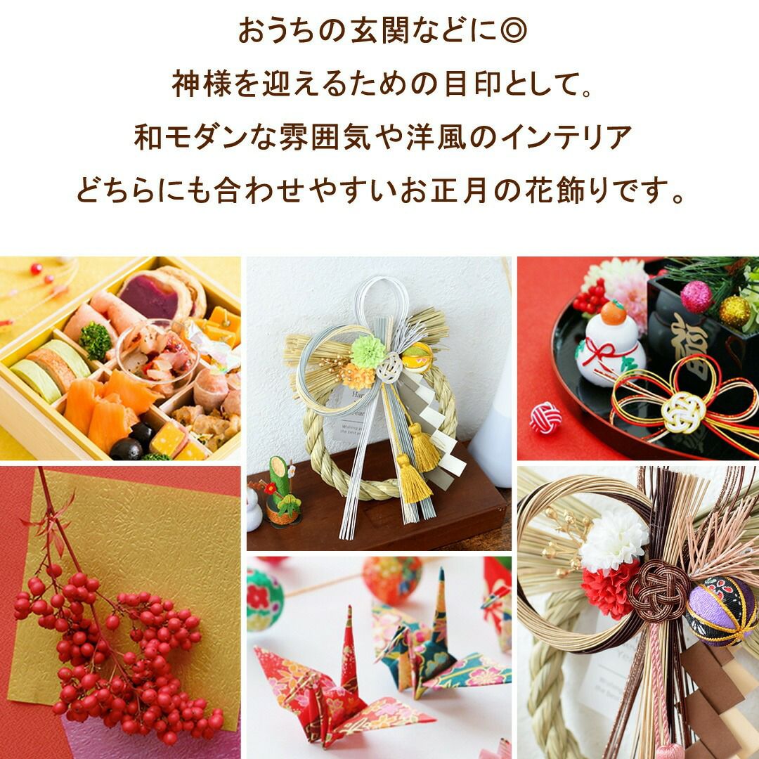 他の画像を見る 送料無料 造花 ドライフラワー 新年のお玄関をおしゃれに彩るアーティフィシャル お正月 新作 おめでた飾り 選べる3種類 [12/15~31届] 当店特別価格 ¥ 2,680 税込 会員価格あり Web会員様特別価格 ¥ 2,546 税込 在庫切れ 詳細を見る お気に入りに登録する