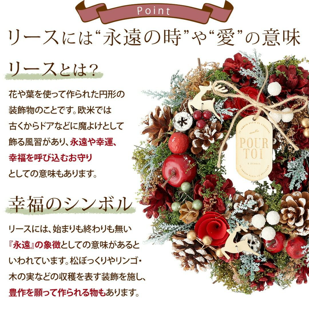 他の画像を見る 即日発送 送料無料 ドライフラワー おしゃれ空間に&インテリアにぴったり♪ 2025 クリスマス 新作リース Lサイズ 選べる15種類 直径約31.5~34cm 天然素材 ドライフラワー [RSL] 当店特別価格 ¥ 4,580 税込 会員価格あり Web会員様特別価格 ¥ 4,350 税込 詳細を見る お気に入りに登録する
