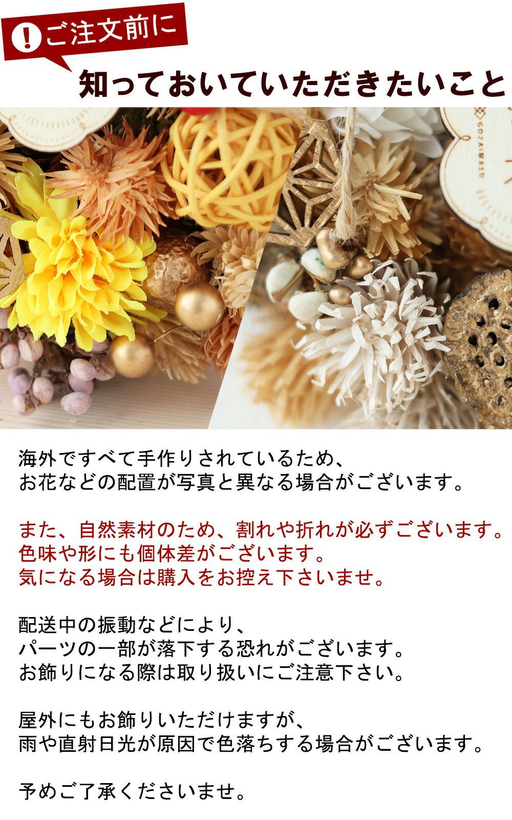 他の画像を見る 送料無料 造花 ドライフラワー お正月に飾れるリース お正月 2026 ミニ ジャパネスクリース 選べる3種類 12/15~12/31までの間で日時指定OK 当店特別価格 ¥ 2,750 税込 会員価格あり Web会員様特別価格 ¥ 2,612 税込 詳細を見る お気に入りに登録する