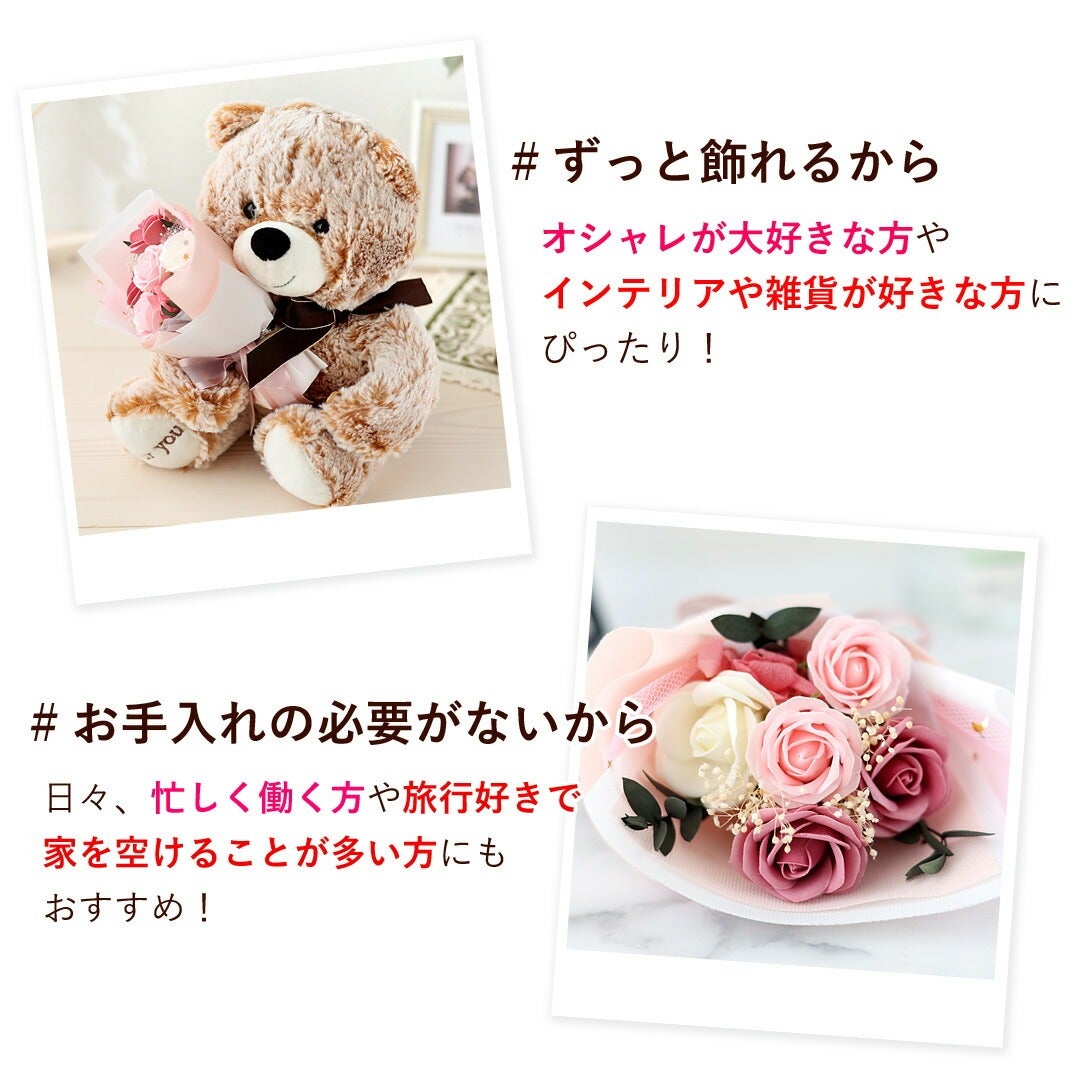 他の画像を見る 即日発送 送料無料 ソープフラワー 造花 人気急上昇!石けんのお花 ソープフラワー サプライズ お誕生日・お祝い・プレゼントなどに人気! ソープフラワー 花束 ベア ブーケ ぬいぐるみ 「フローラル&ベアギフトセット」 当店特別価格 ¥ 5,790 税込 会員価格あり Web会員様特別価格 ¥ 5,500 税込 在庫切れ 詳細を見る お気に入りに登録する
