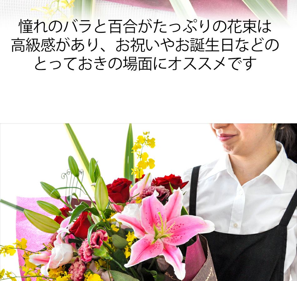 他の画像を見る 即日発送 送料無料 誕生日 生花花束 ボリュームたっぷり!女性へのプレゼントやお祝いに◎ オリエンタル百合とバラの花束 当店特別価格 ¥ 6,990 税込 会員価格あり Web会員様特別価格 ¥ 6,640 税込 詳細を見る お気に入りに登録する