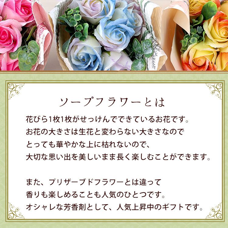 他の画像を見る 即日発送 送料無料 ソープフラワー 造花 人気急上昇!石けんのお花 ソープフラワー サプライズ お誕生日・お祝い・プレゼントなどに人気 【土日も発送】 即日発送対応 ソープフラワー キュートシャボンブーケ 当店特別価格 ¥ 2,590 税込 会員価格あり Web会員様特別価格 ¥ 2,460 税込 詳細を見る お気に入りに登録する