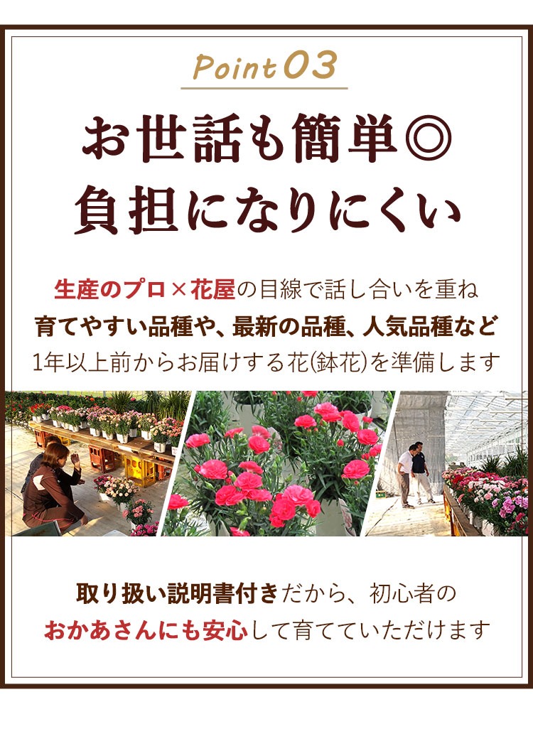 当店オリジナル母の日カード/育て方説明書/品質保証付きショップカード