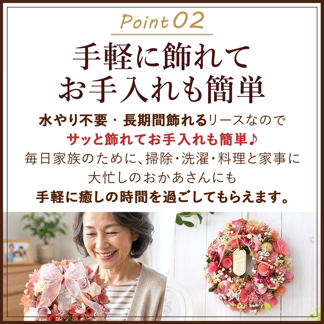 他の画像を見る 送料無料 セット商品 ドライフラワー 母の日期間限定 掛けるだけで華やか選べるナチュラルリースとスイーツセット 母の日 2026 ドライフラワー 選べる3種 リース と スイーツ あまおうのしっとりバームボックス セット 当店特別価格 ¥ 4,385 税込 詳細を見る お気に入りに登録する