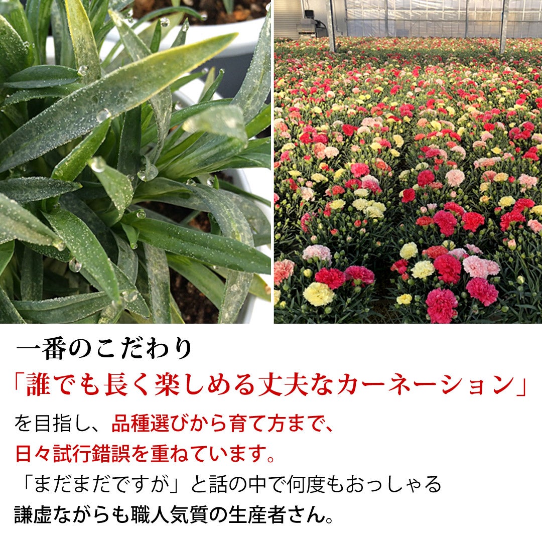 他の画像を見る 送料無料 鉢植え 母の日期間限定 母の日 新種や希少カーネーション登場! 特早割 母の日 2026 産地直送 選べる8種類 モリヒロ園芸さんのプレミアム カーネーション 鉢植え 5号鉢 in バスケット 当店特別価格 ¥ 2,990 税込 詳細を見る お気に入りに登録する