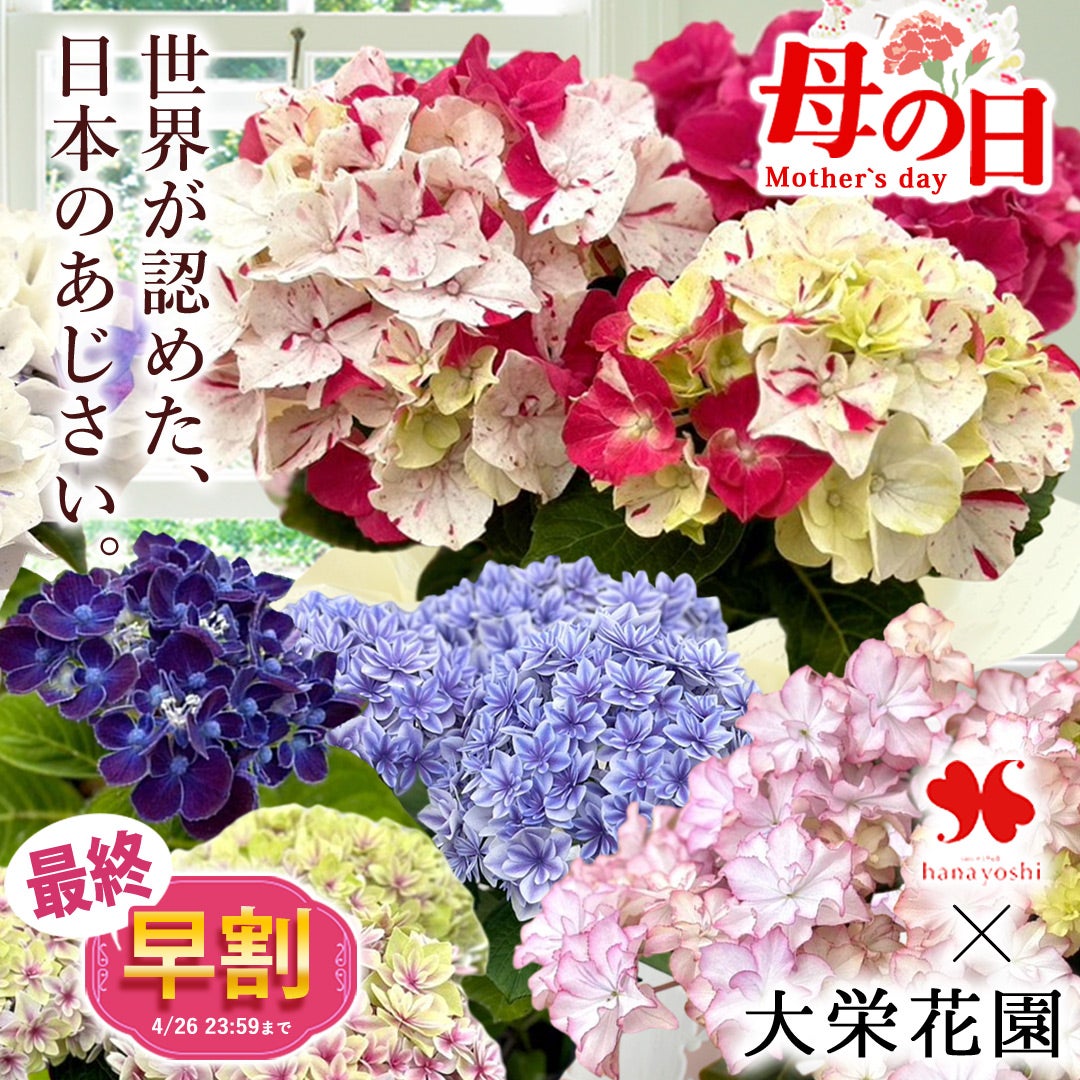他の画像を見る 送料無料 鉢植え 母の日期間限定 アジサイで母の日後の梅雨の季節もお母さんを笑顔に♪ 早割 母の日 2026 希少品種 選べる6種類 大栄花園さんの あじさい 4号鉢 in バスケット 当店特別価格 ¥ 4,079 税込 詳細を見る お気に入りに登録する