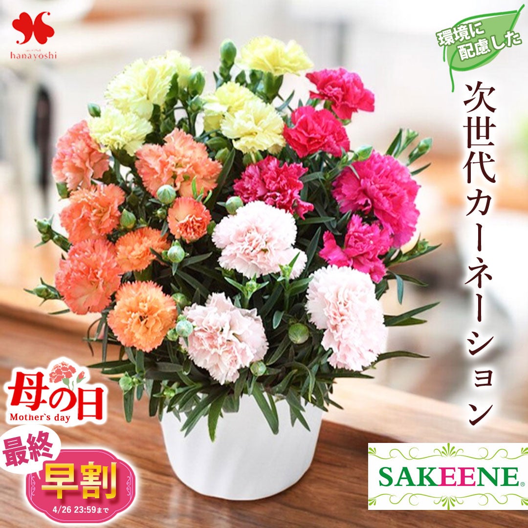 他の画像を見る 送料無料 鉢植え 母の日期間限定 DGsにも配慮した進化系カーネーション! 早割 母の日 鉢植え 2026 カーネーション SAKEENE(R)の4色植え サキーネ 5号鉢 in バスケット 当店特別価格 ¥ 5,080 税込 詳細を見る お気に入りに登録する