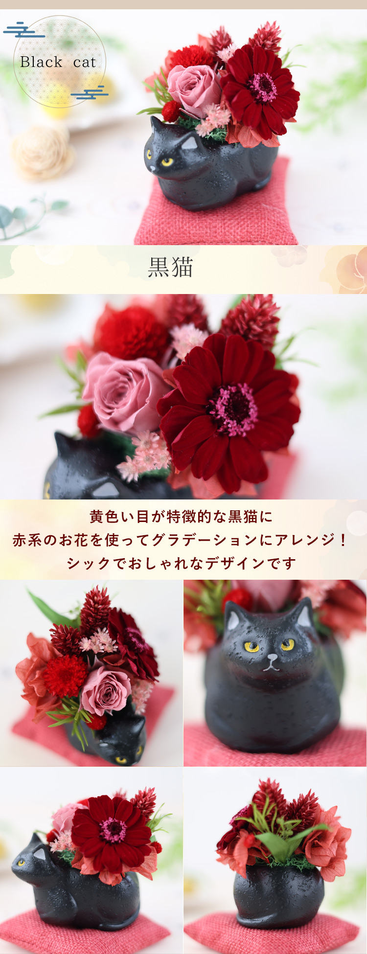 ●プリザアレンジ「くつろぎ猫」選べる7種