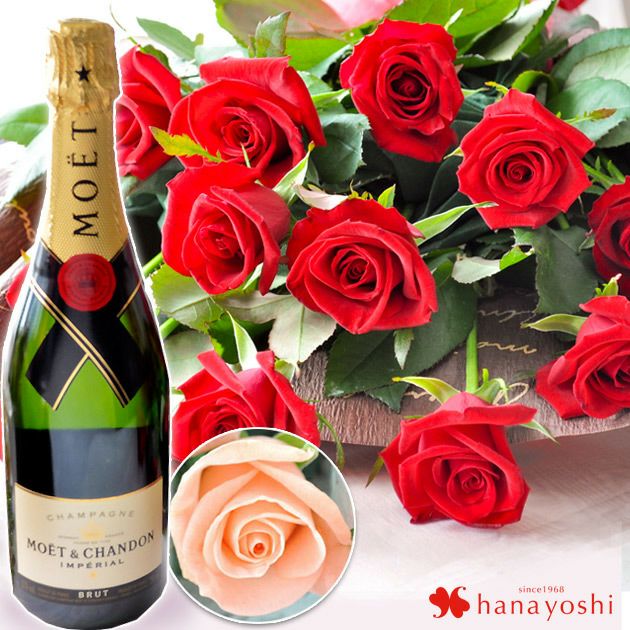 とっておきの思い出を☆誕生日・お祝いに 花色が選べる 1ダースのバラの花束とシャンパンのセット