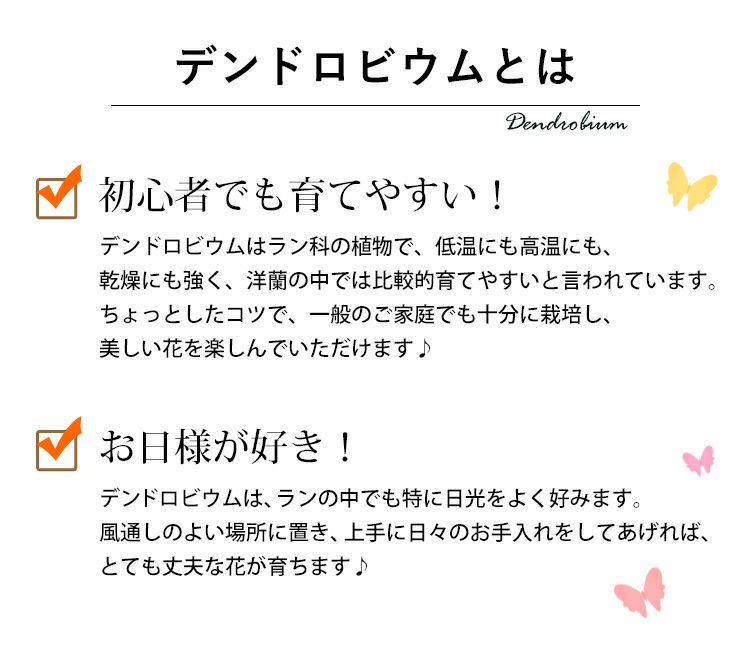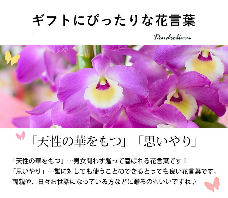 他の画像を見る 送料無料 誕生日 鉢植え ご自宅用にもギフトにもオススメ☆ 春の洋蘭 人気のピンク系 デンドロビウム ~4/20お届け 当店特別価格 ¥ 5,980 税込 会員価格あり Web会員様特別価格 ¥ 5,681 税込 在庫切れ 詳細を見る お気に入りに登録する
