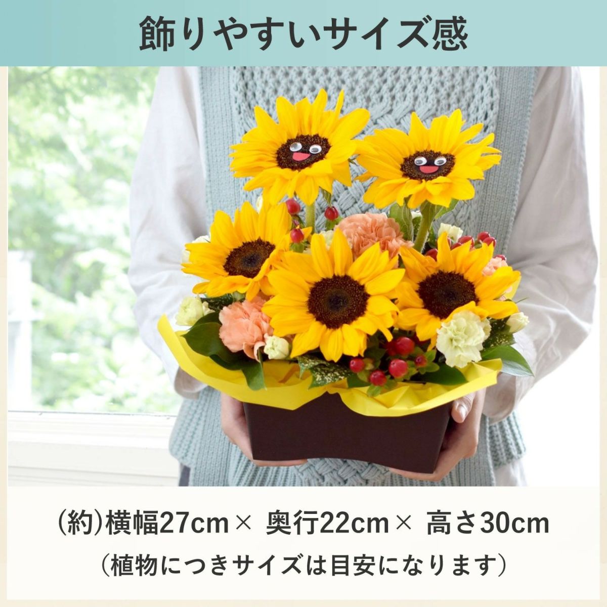 他の画像を見る 送料無料 生花アレンジ 夏限定!ひまわり アレンジメント で笑顔を贈りませんか? [冷蔵便] ひまわり アレンジメント 生花 にっこり ひまわりSUNSUN <6/6~8/25の間で指定OK> 当店特別価格 ¥ 5,930 税込 会員価格あり Web会員様特別価格 ¥ 5,633 税込 在庫切れ 詳細を見る お気に入りに登録する