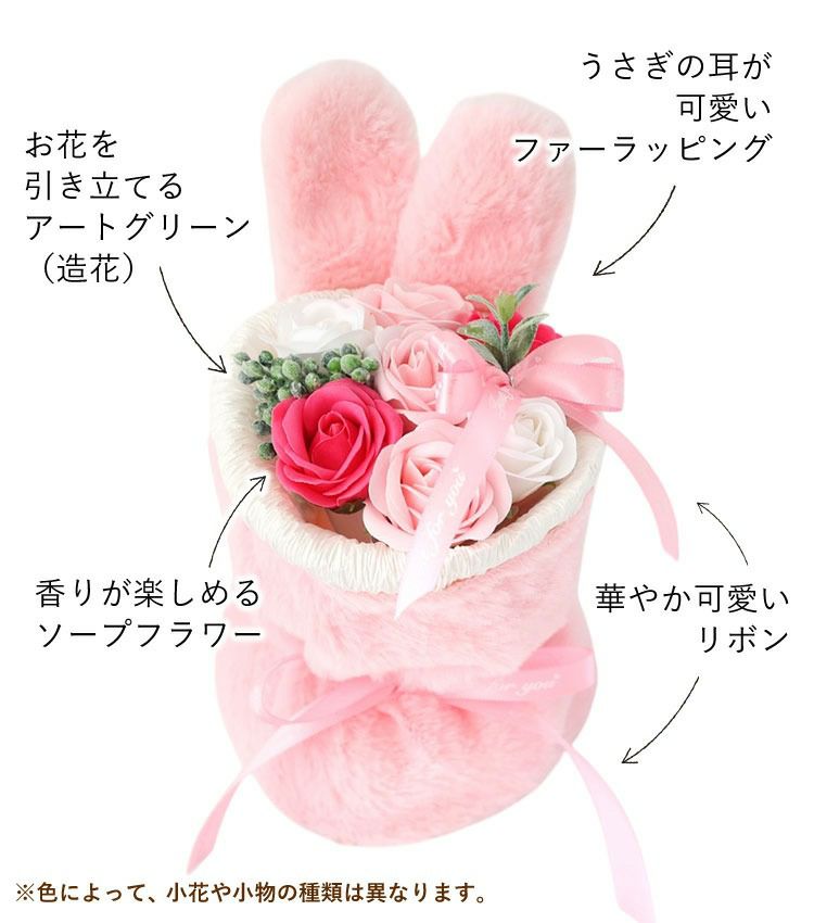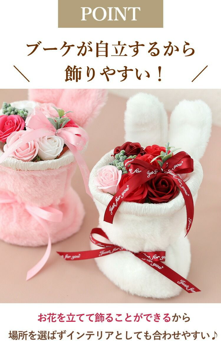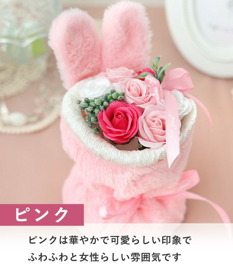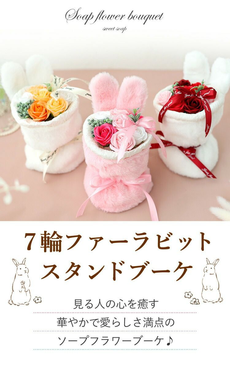 他の画像を見る 即日発送 送料無料 誕生日 ソープフラワー 自立する、ふわふわうさみみが可愛い&香りで楽しむブーケ! ソープフラワー 花束 7輪 ファーラビットスタンドブーケ 選べる 3カラー 当店特別価格 ¥ 2,200 税込 会員価格あり Web会員様特別価格 ¥ 2,090 税込 在庫切れ 詳細を見る お気に入りに登録する