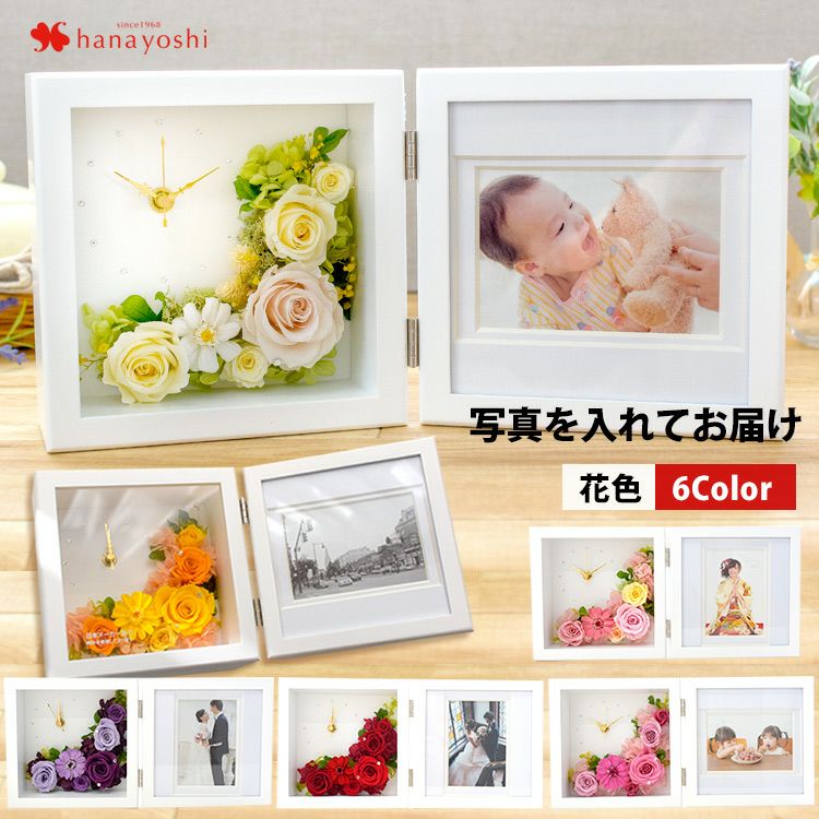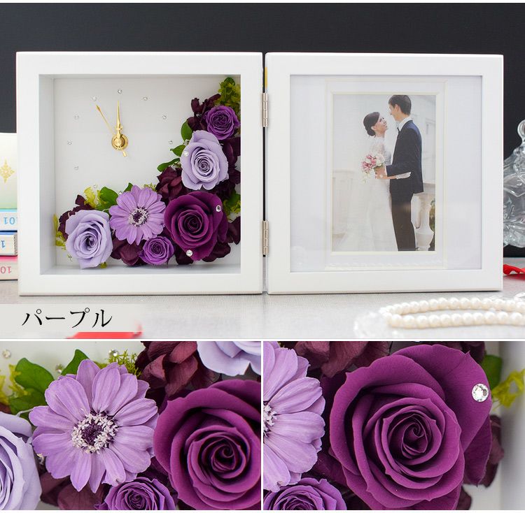 4. 時計付きフォトフレーム プリザーブドフラワー 送料無料