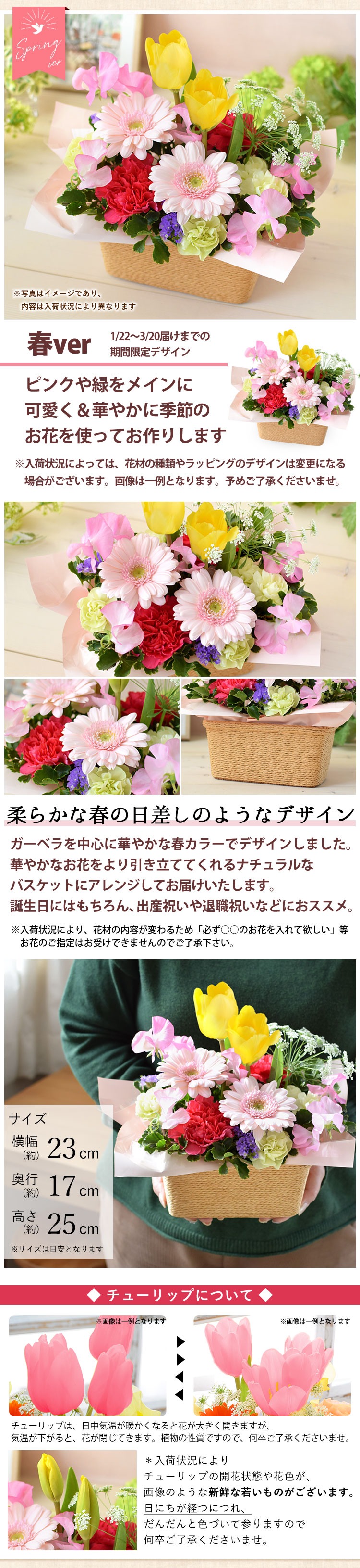 季節の花各種、グリーン/バスケット(デザインおまかせ)/