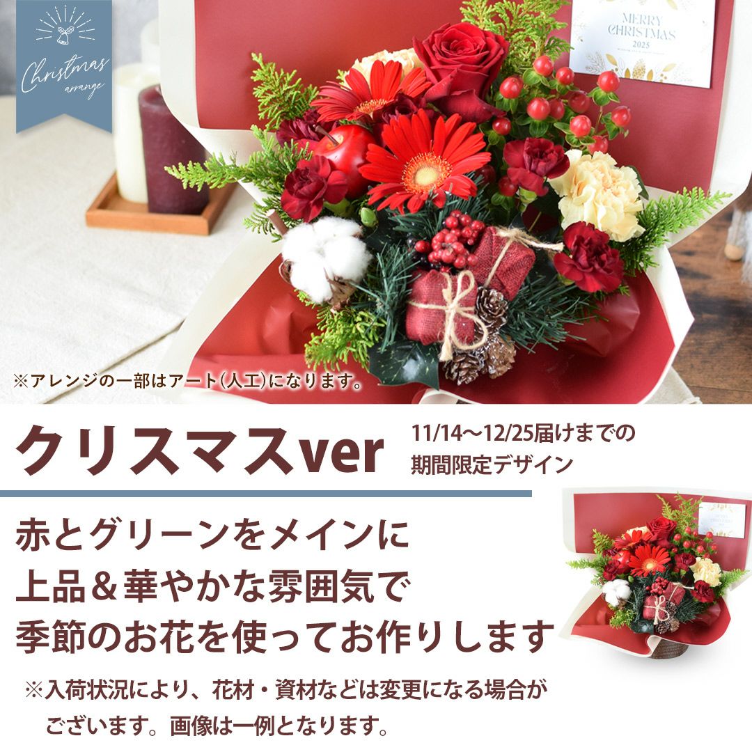 他の画像を見る 送料無料 生花アレンジ クリスマスを感じられる秋のアレンジメント! カトラリーバスケットアレンジ クリスマスver 11/14~12/25の間でお届け 当店特別価格 ¥ 4,980 税込 詳細を見る お気に入りに登録する