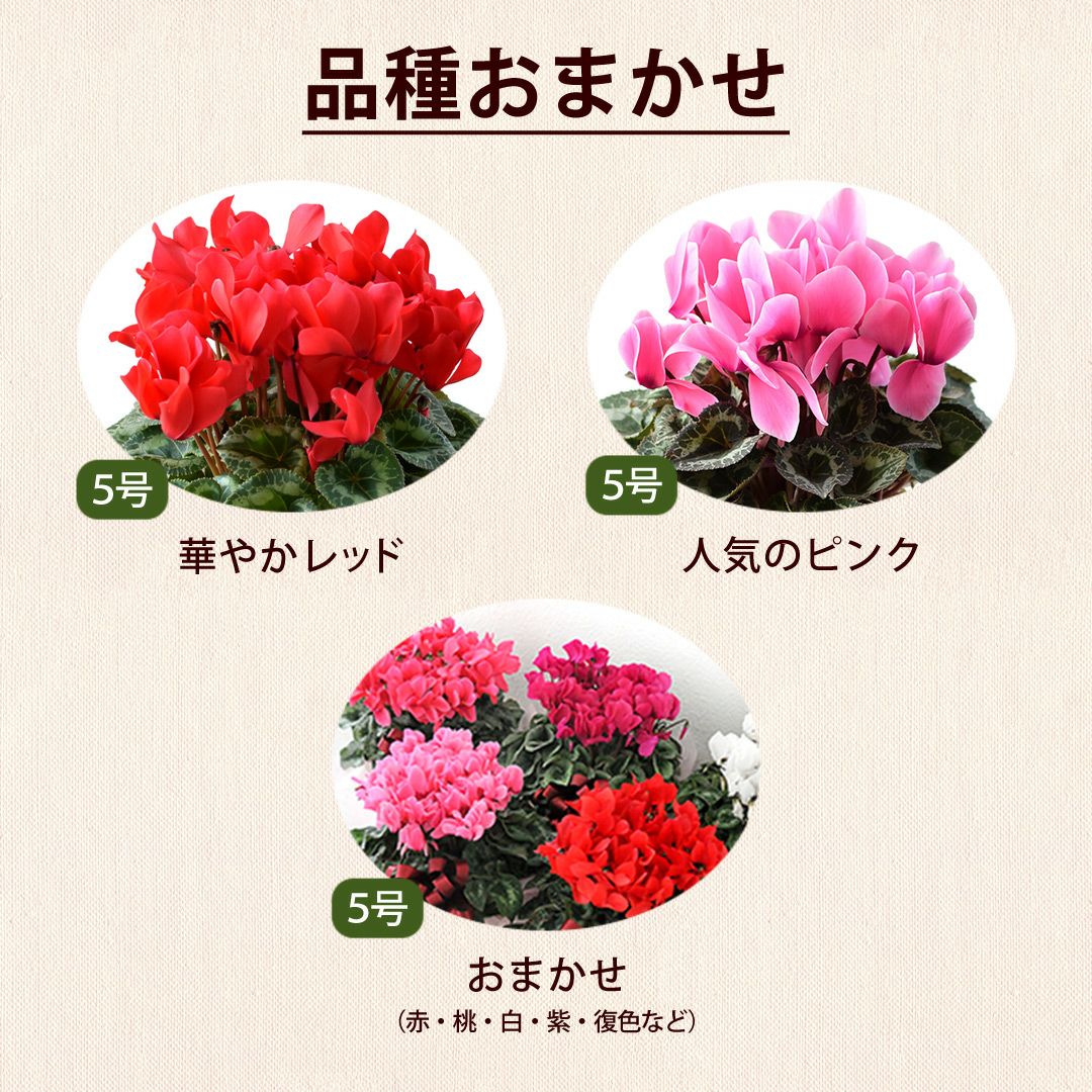 他の画像を見る 送料無料 鉢植え 贈り物にも人気のシクラメン 鉢植え 品種が選べる シクラメン 鉢植え 5号鉢 <バスケット付> 【11月29日~12月25日のお届け】 送料無料 当店特別価格 ¥ 4,480 税込 会員価格あり Web会員様特別価格 ¥ 4,255 税込 在庫切れ 詳細を見る お気に入りに登録する