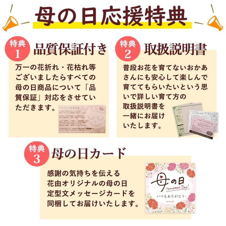 当店オリジナル母の日カード/お取扱い説明書/品質保証付きリーフレット