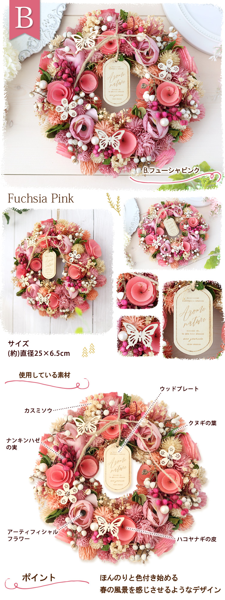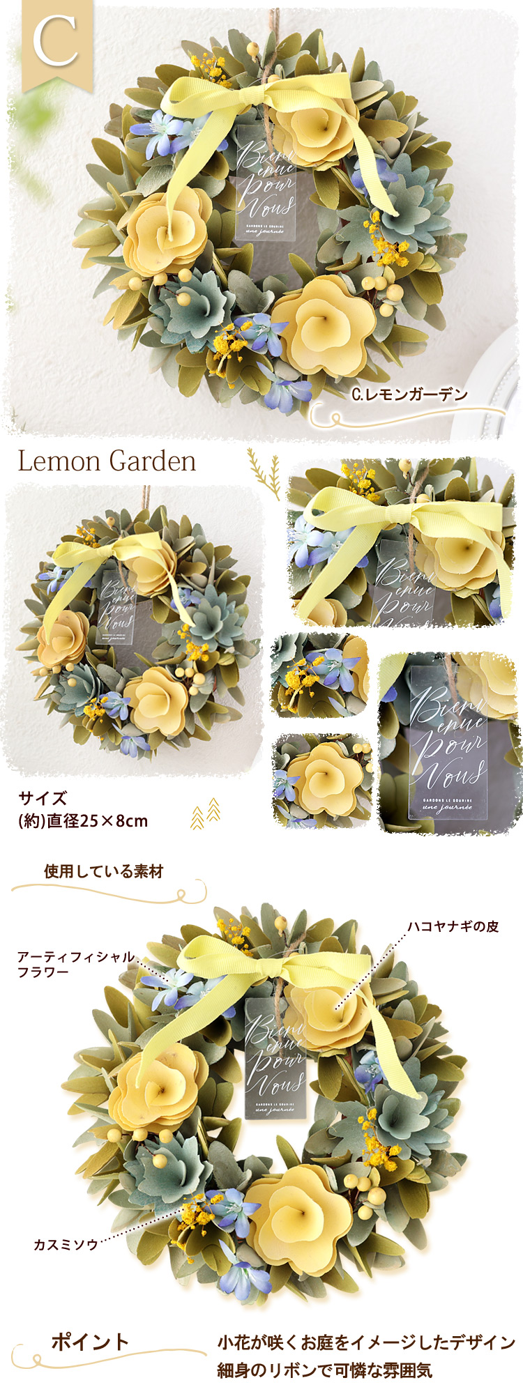 リースのサイズ:(約)直径23〜25cm