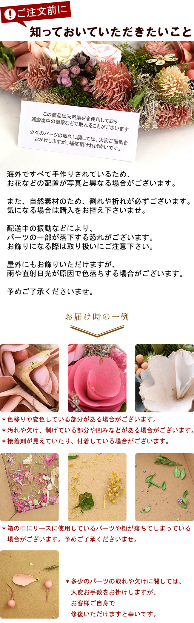 (*こちらのリースの入った箱はご自宅用の簡易箱となっております。多少の傷やへこみなどはご了承ください。)
