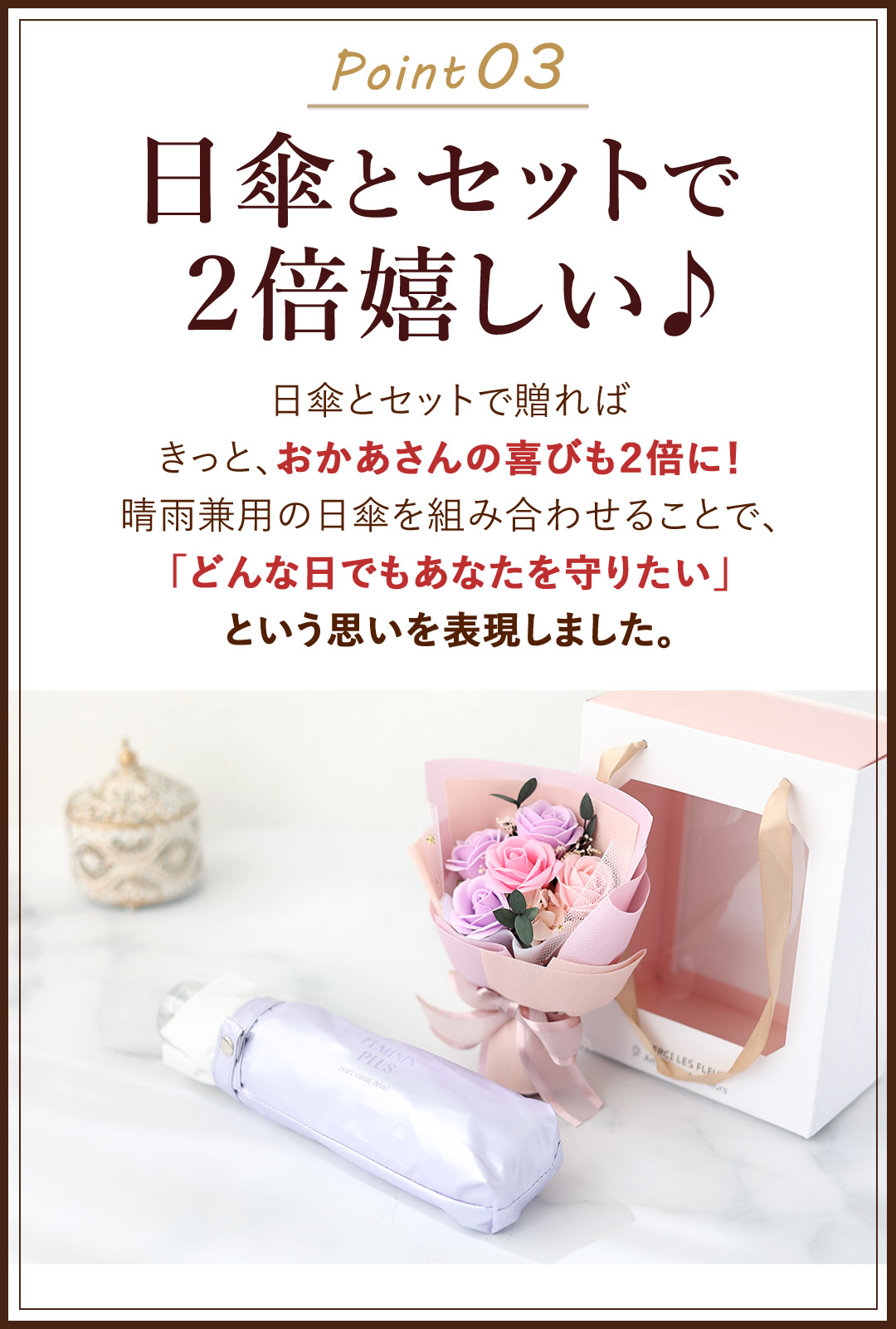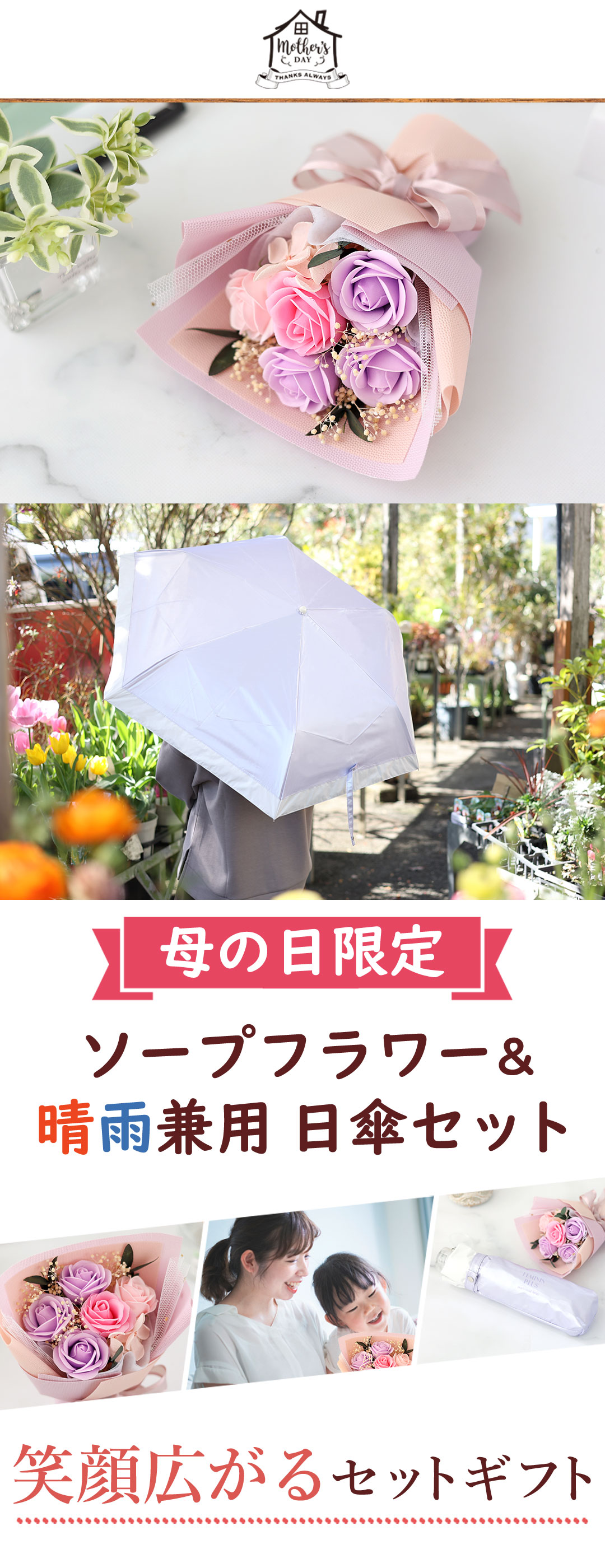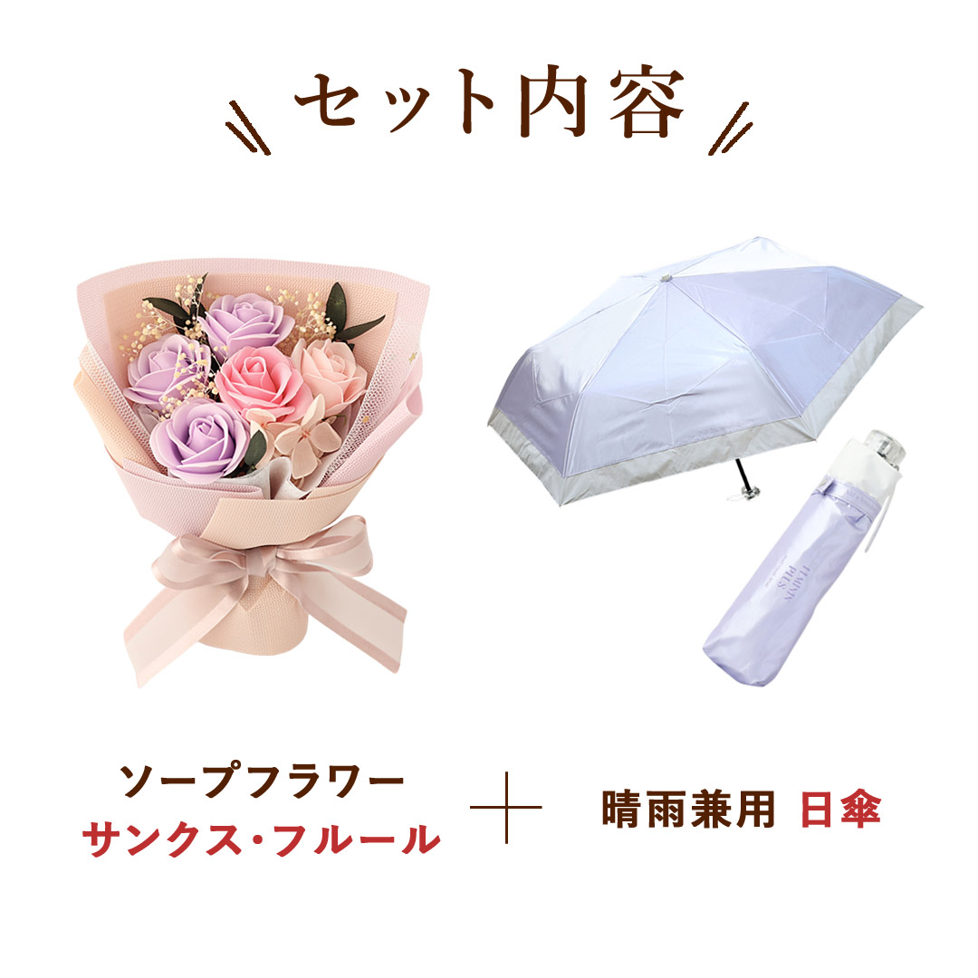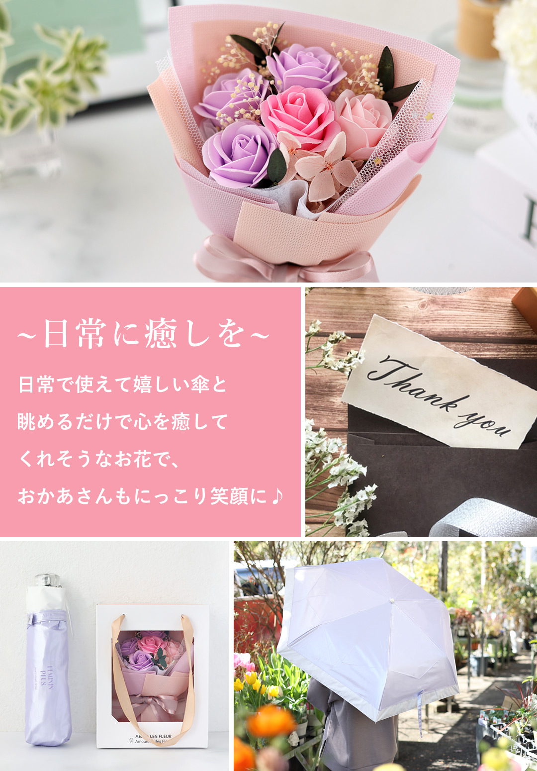 5. 母の日 ギフト 2026 セットギフト ソープフラワー サンクス・フルール 晴雨兼用 折り畳み傘 セット