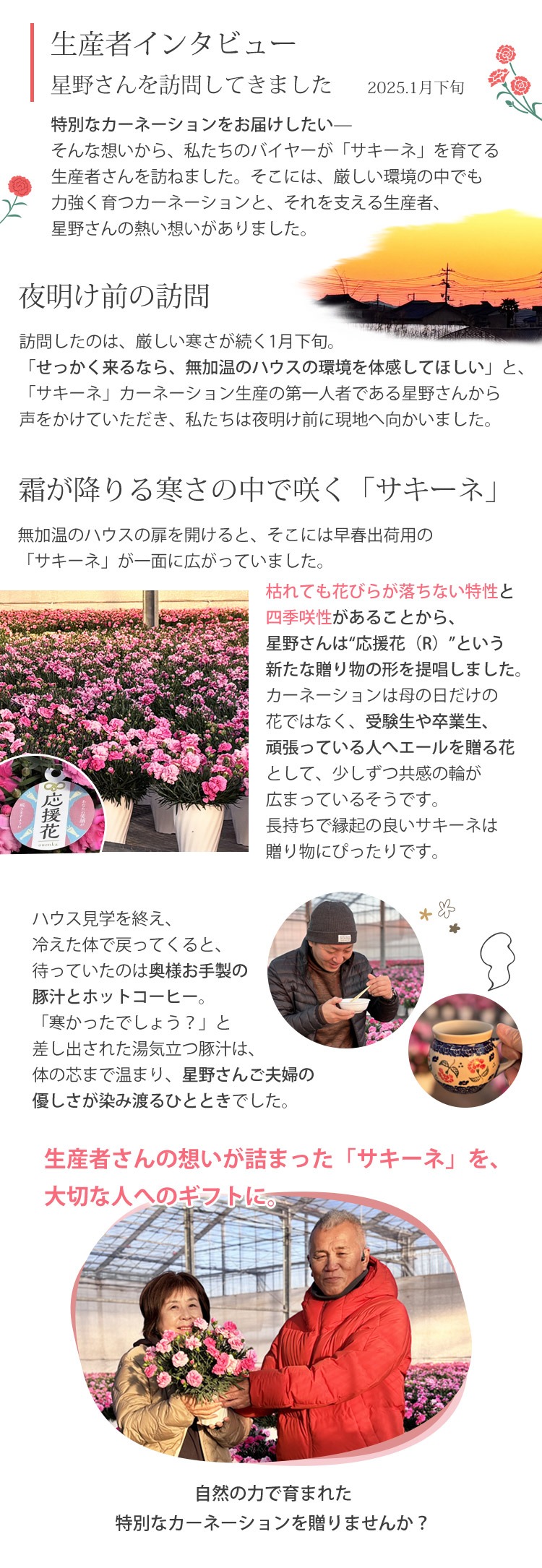 鉢花 応援花 サキーネ 星野さんの無加温 カーネーション 5号鉢