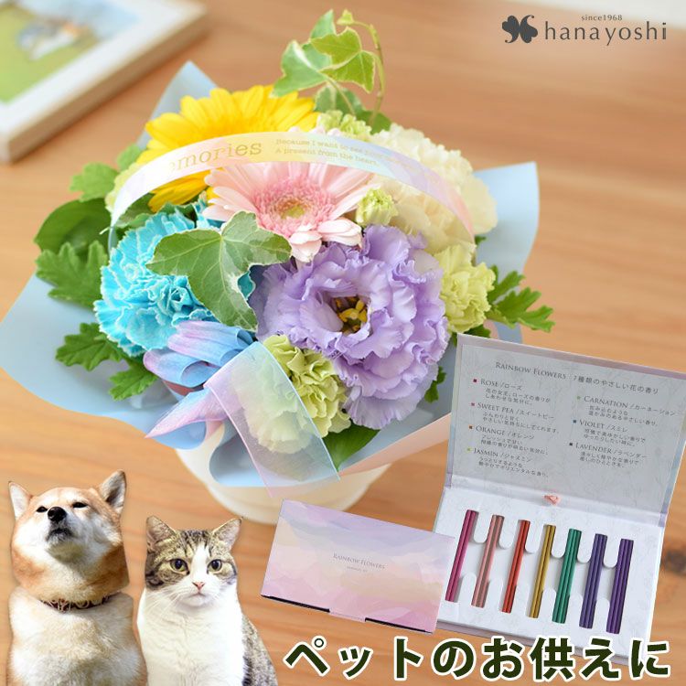 ペットに贈るお供えのお花とお線香セット お供え 生花アレンジメント charite-シャリテ & 7種の香るお線香セット