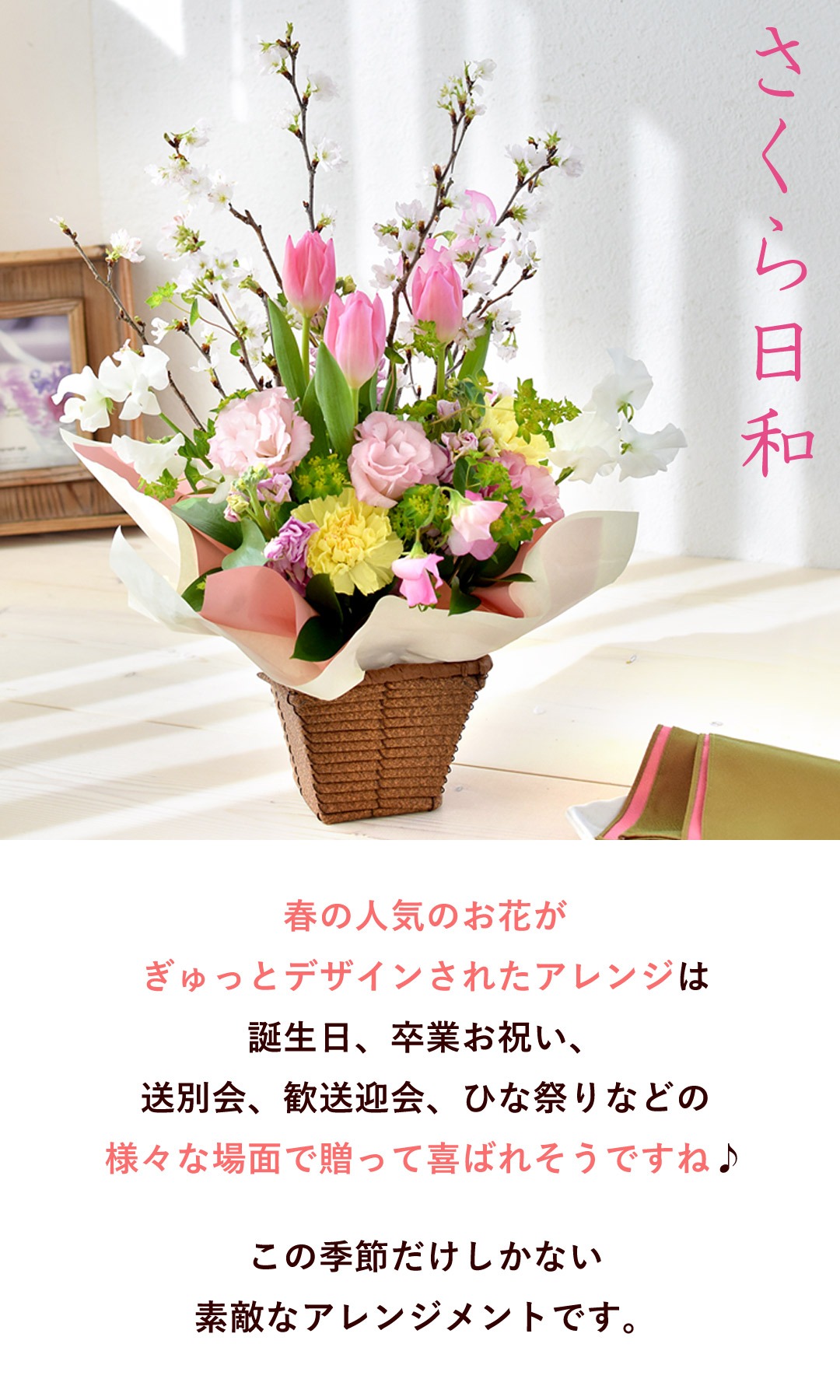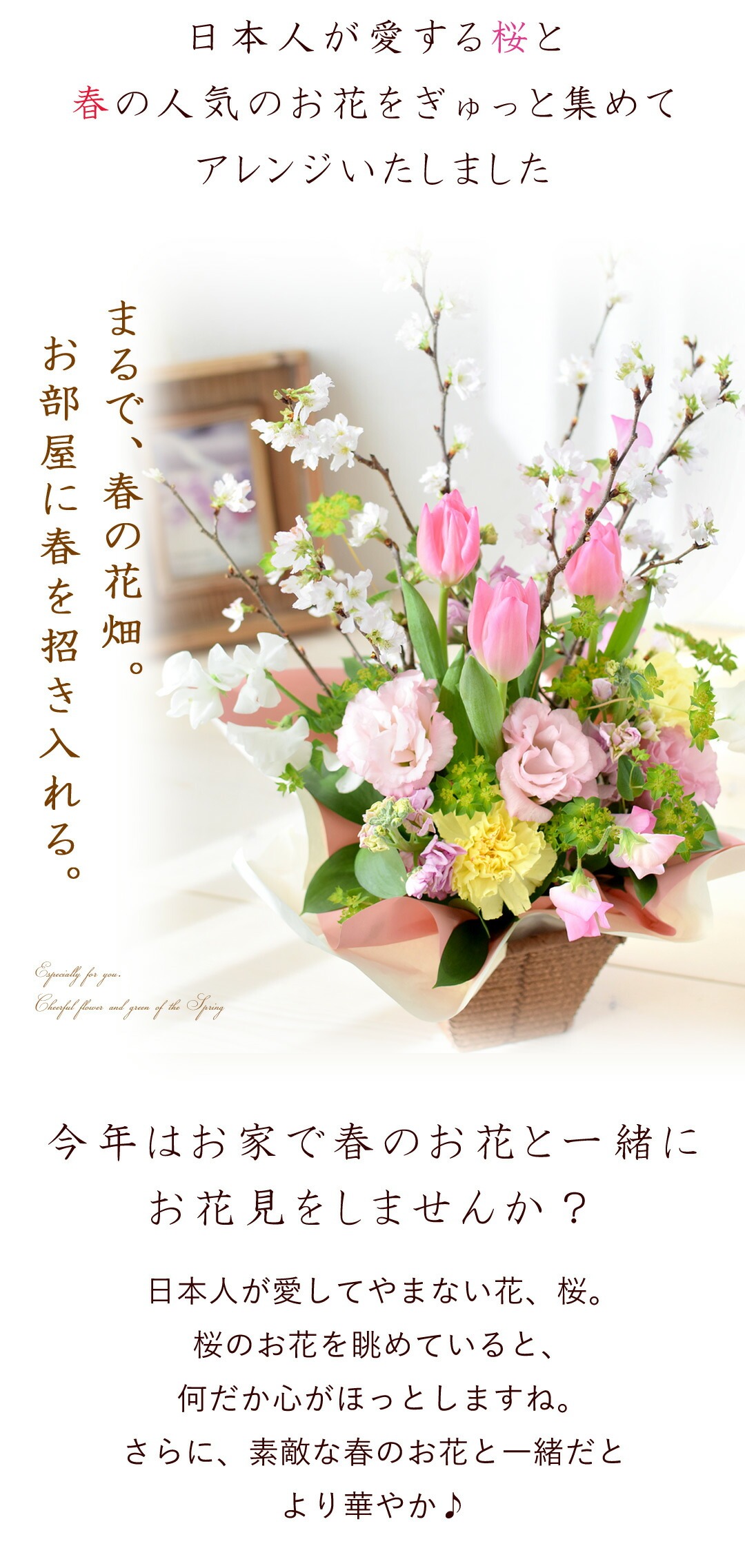 春限定 桜 と 春の花 の 生花アレンジ さくら日和 おうち花見 お部屋でお花見