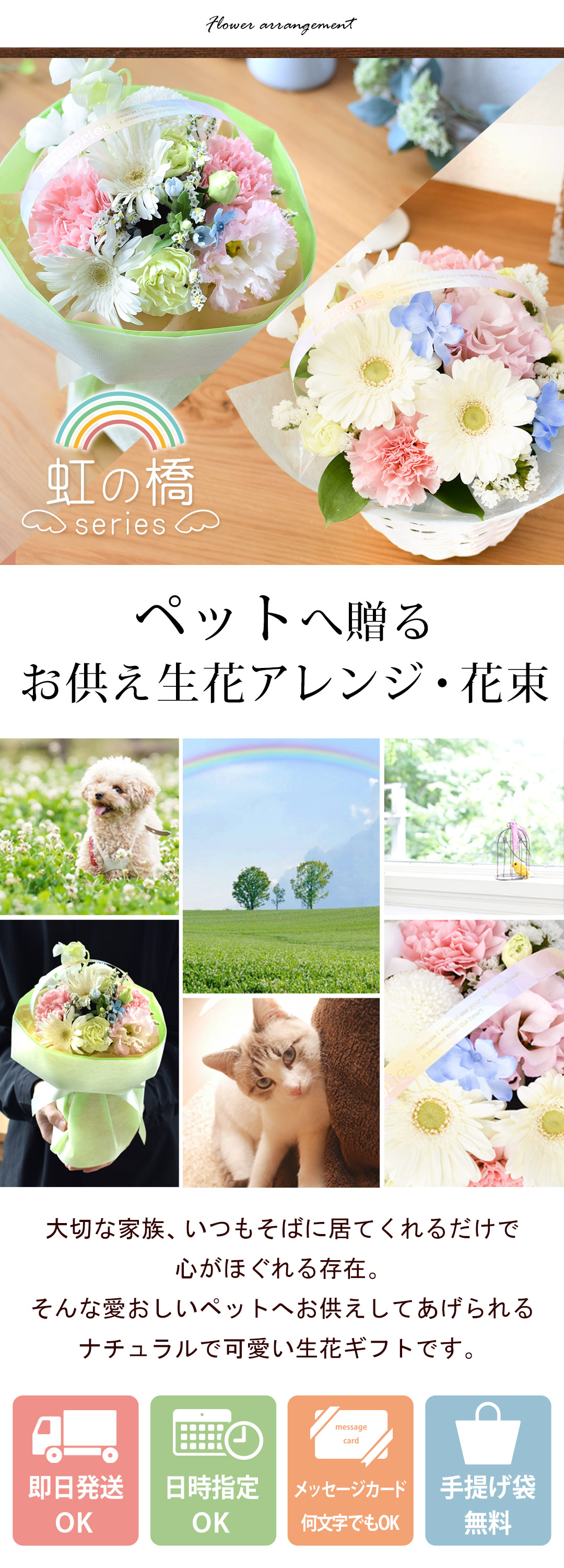 お供え ペット 生花アレンジメント または 花束 そのままブーケ 選べる「虹の橋シリーズ」 パステル