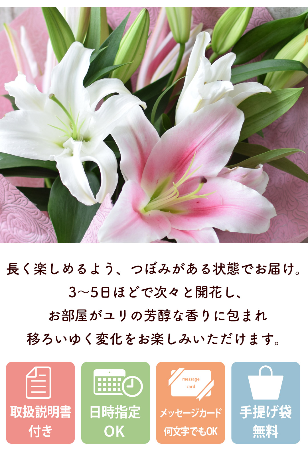 ●ユリの花束(ホワイト系/ピンク系/ミックスのいずれか)