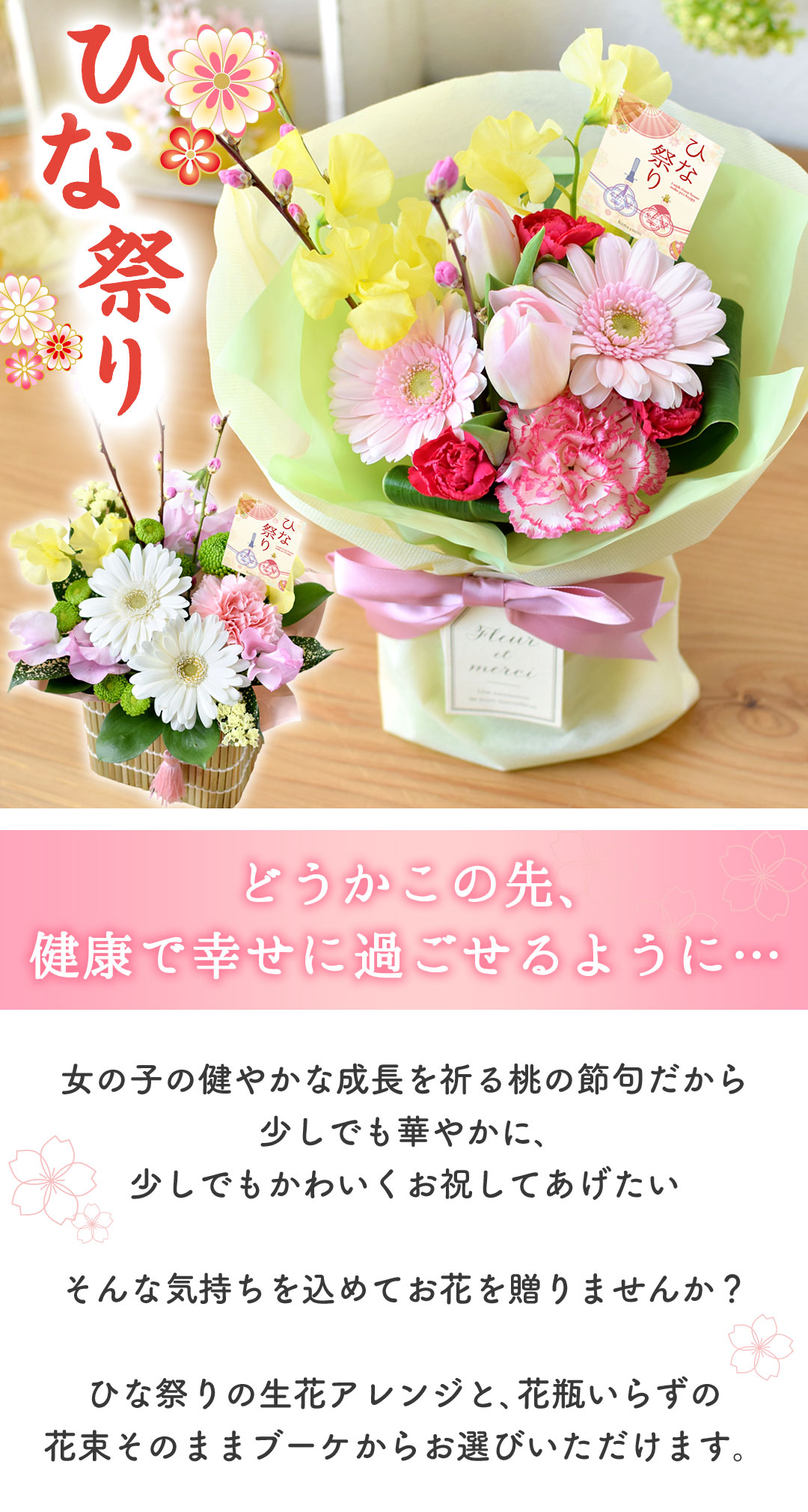ひな祭り 花瓶のいらずの花束 そのままブーケ か 生花アレンジ から選べるお花 桃の節句の花飾り ひなまつり 3/3までお届け