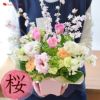 5. 春限定 2024 送料無料 桜と春の花の生花アレンジ さくら日和 1/30~3/22の間にお届け