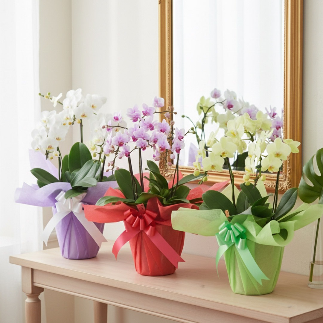 花言葉は「幸せが飛んでくる」 贈答用のミディ胡蝶蘭