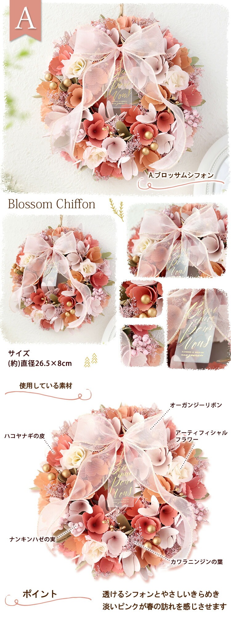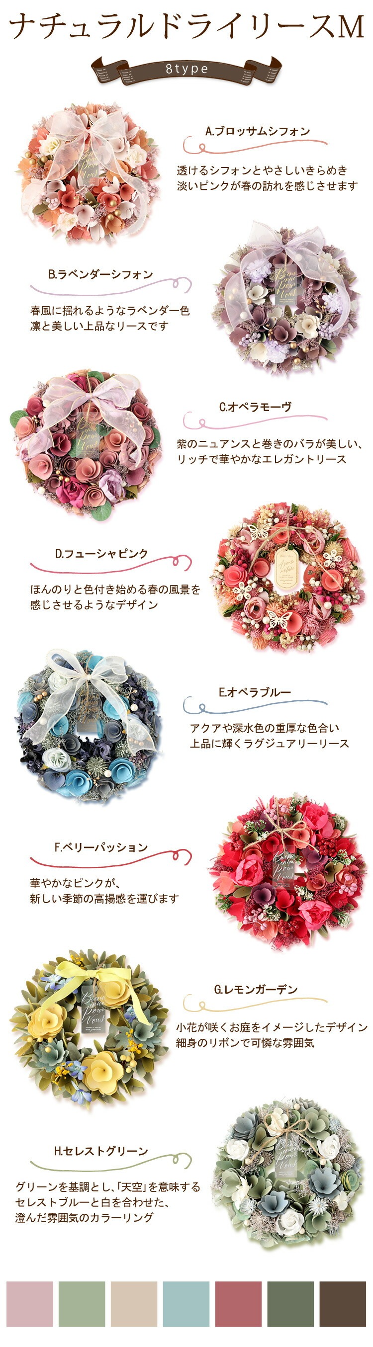 4. 2026 新作 春リース Mサイズ 選べる8種類 直径約24~26.5cm 天然素材 ドライフラワー [RSL]