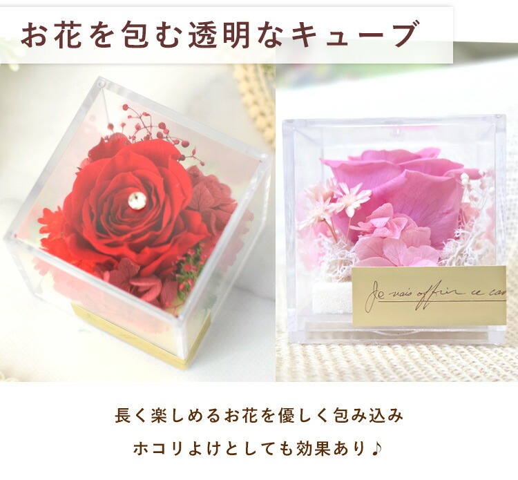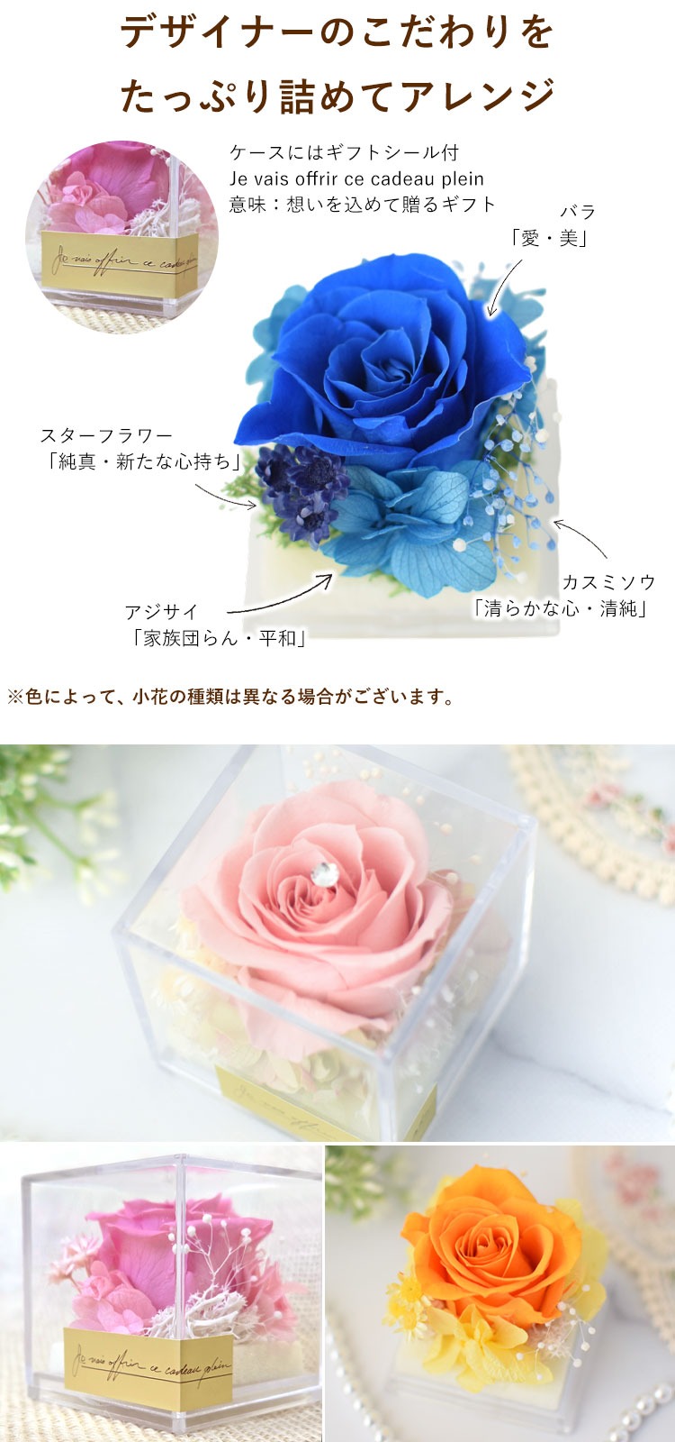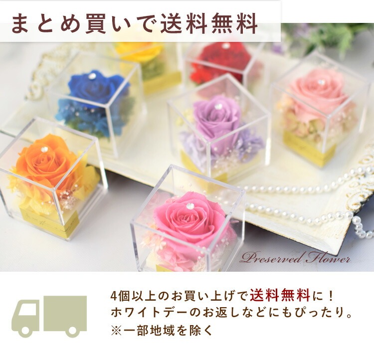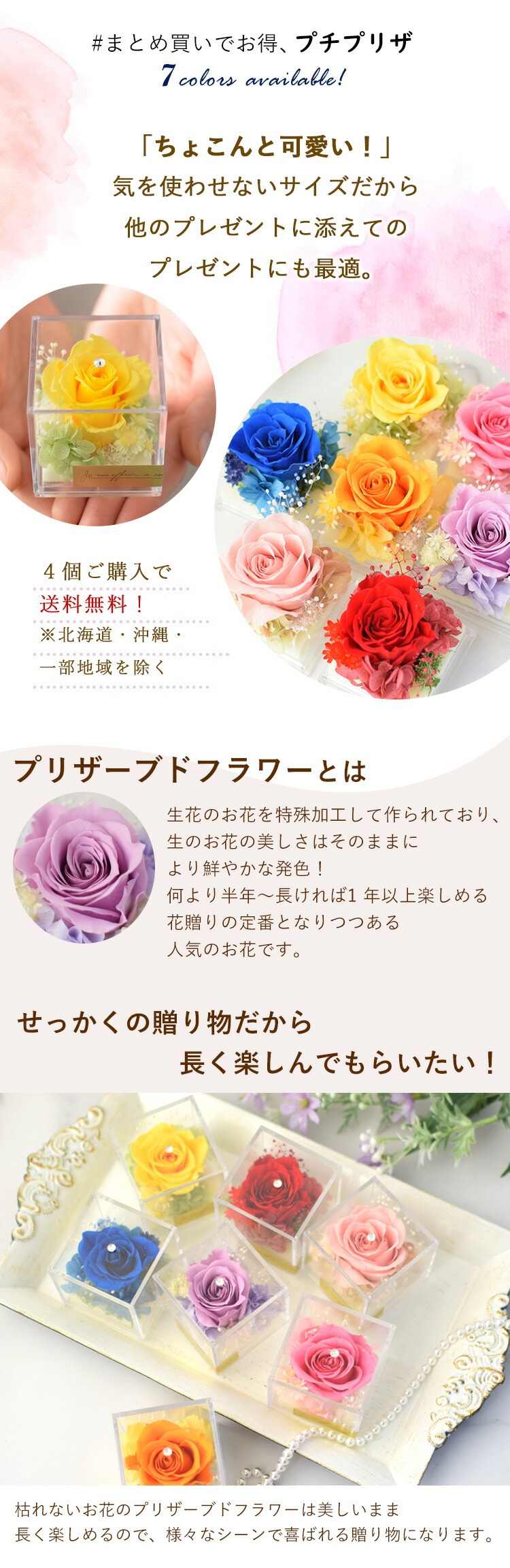 プリザーブドフラワー プチプリザinキューブ 選べる7色 4個以上で送料無料(1配送先に限る)