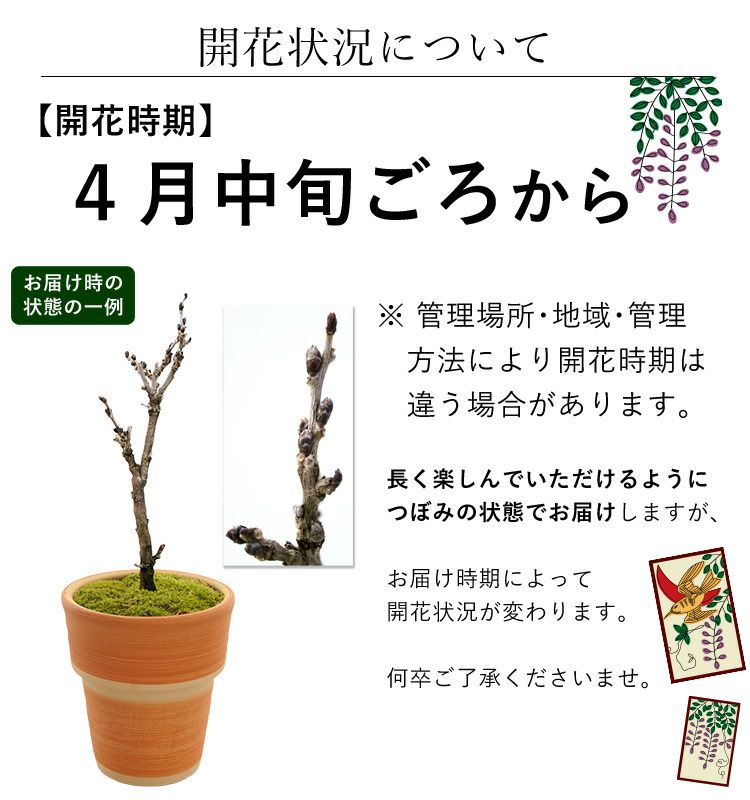 他の画像を見る 送料無料 鉢植え おうちで桜のお花見ができる創作盆栽 桜 盆栽 花芽付 創作盆栽~旭山桜&南殿桜2本植え~ 万古焼手造り 2/25~4/6で日時指定OK 当店特別価格 ¥ 7,680 税込 会員価格あり Web会員様特別価格 ¥ 7,295 税込 在庫切れ 詳細を見る お気に入りに登録する