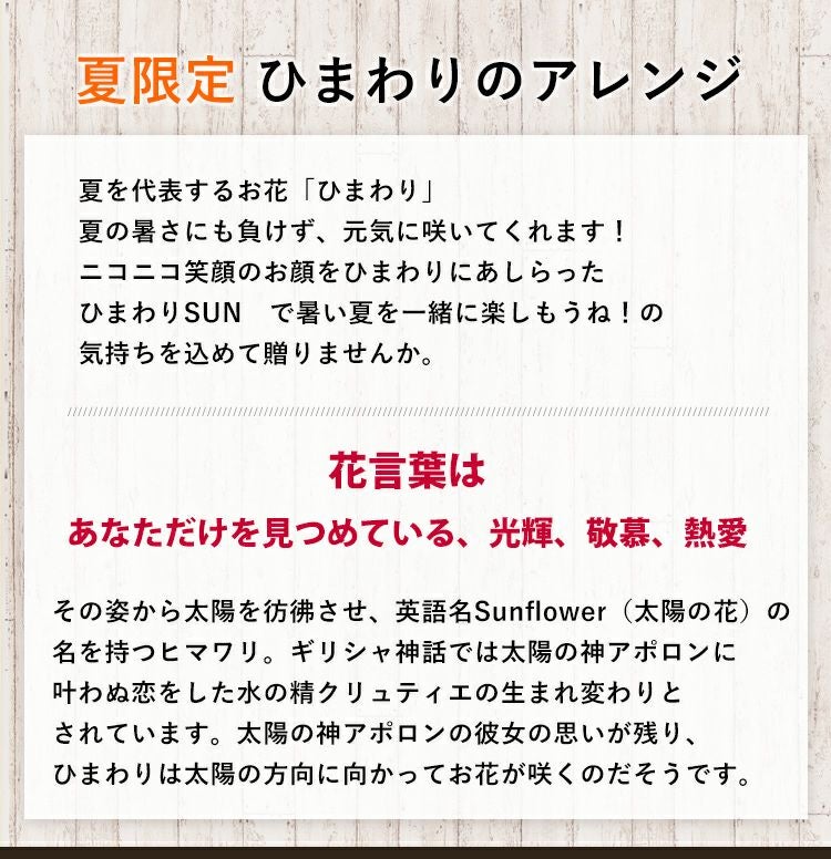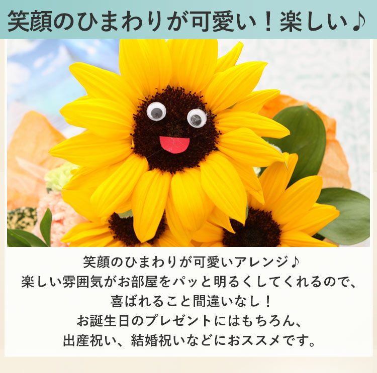 他の画像を見る 笑顔がかわいいひまわりのアレンジメント クール便でお届け アレンジメント ~にっこりヒマワリSUN [冷蔵便] 当店特別価格 ¥ 4,200 税込 会員価格あり Web会員様特別価格 ¥ 3,990 税込 在庫切れ 笑顔がかわいいひまわりのアレンジメント 詳細を見る お気に入りに登録する