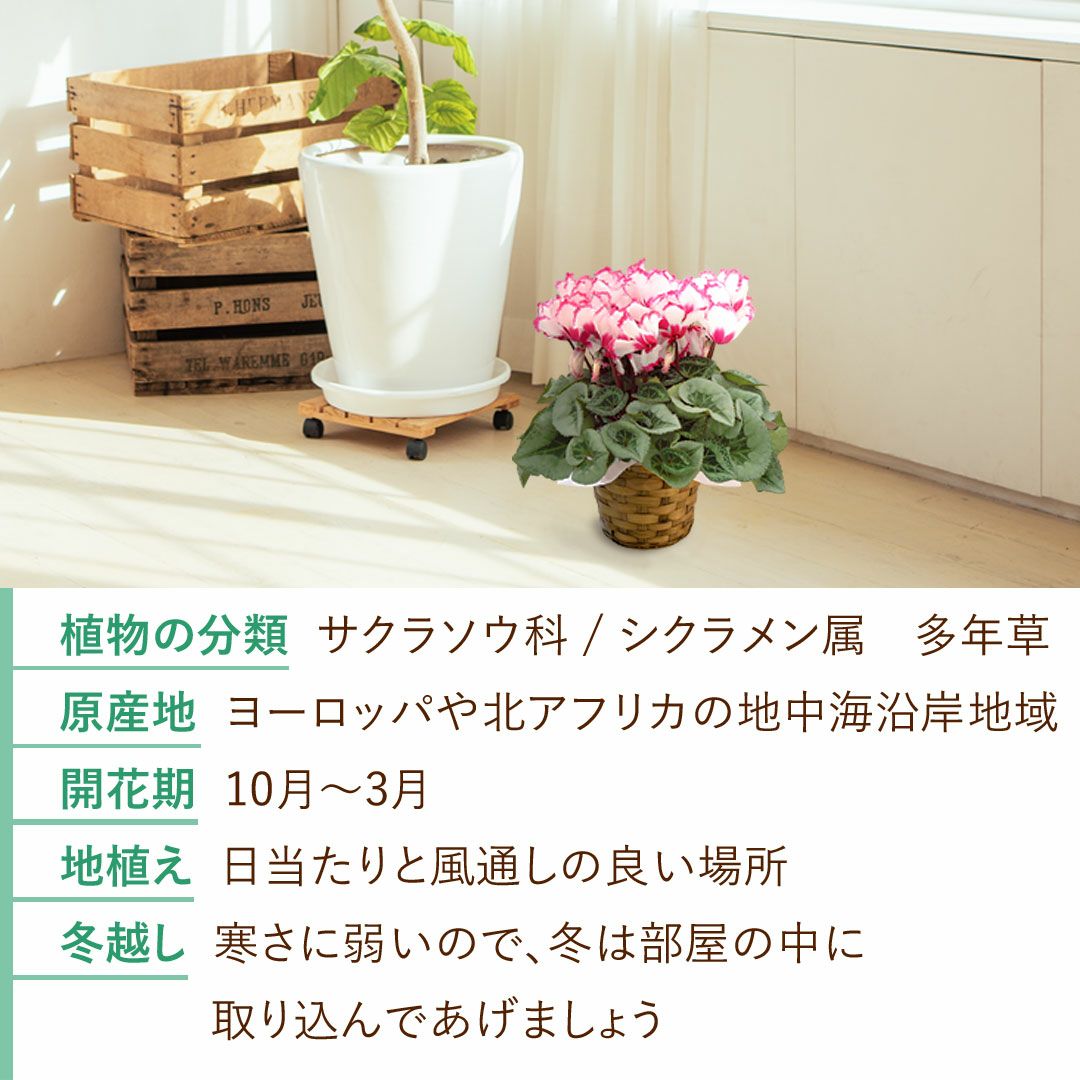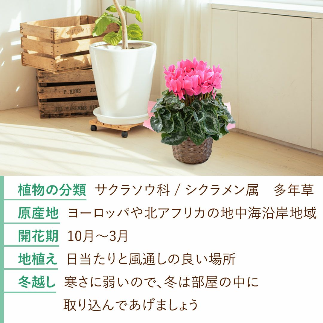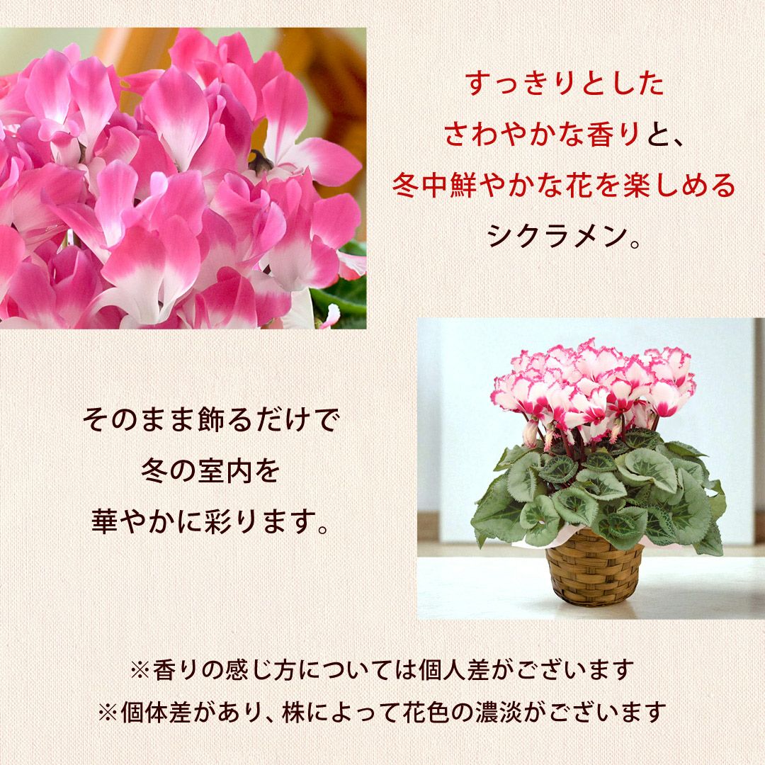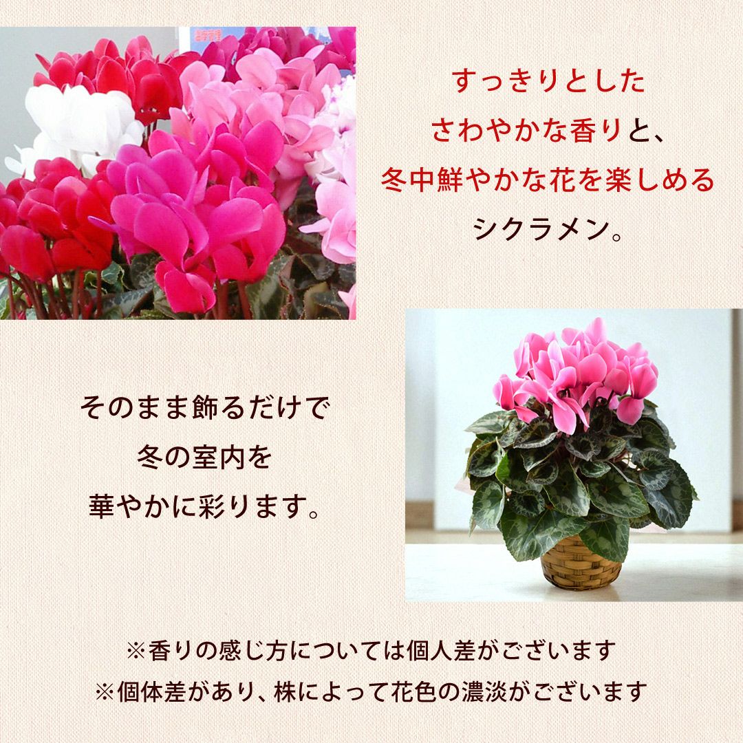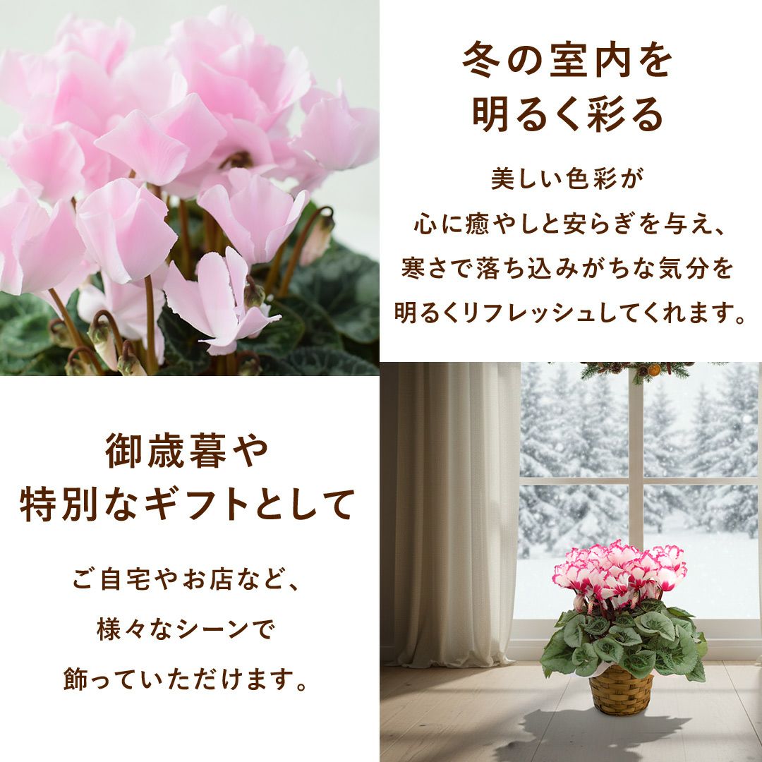 他の画像を見る 送料無料 鉢植え 贈り物にも人気のシクラメン 鉢植え 品種が選べる シクラメン 鉢植え 5号鉢 <バスケット付> 【11月29日~12月25日のお届け】 送料無料 当店特別価格 ¥ 4,480 税込 会員価格あり Web会員様特別価格 ¥ 4,255 税込 在庫切れ 詳細を見る お気に入りに登録する