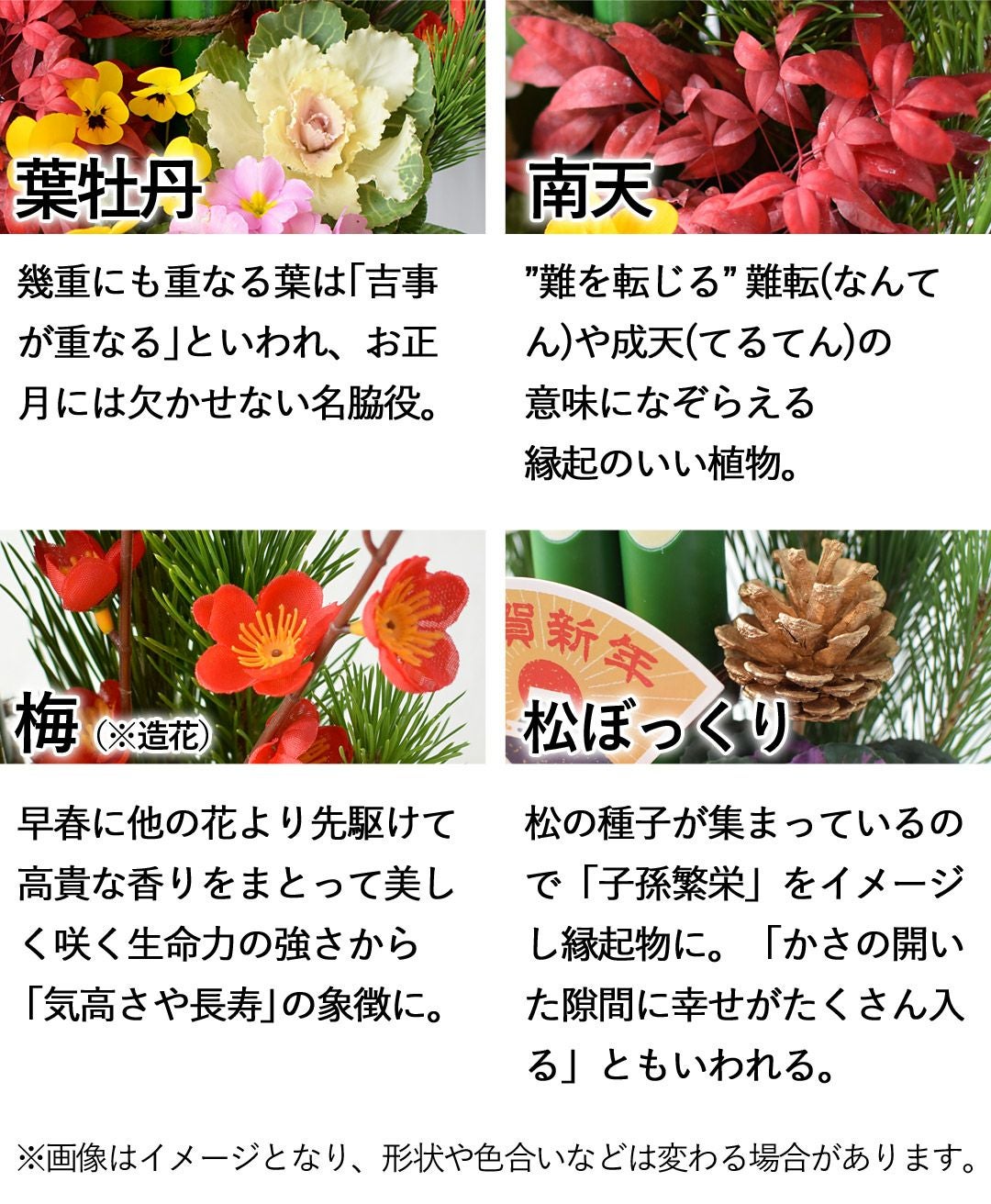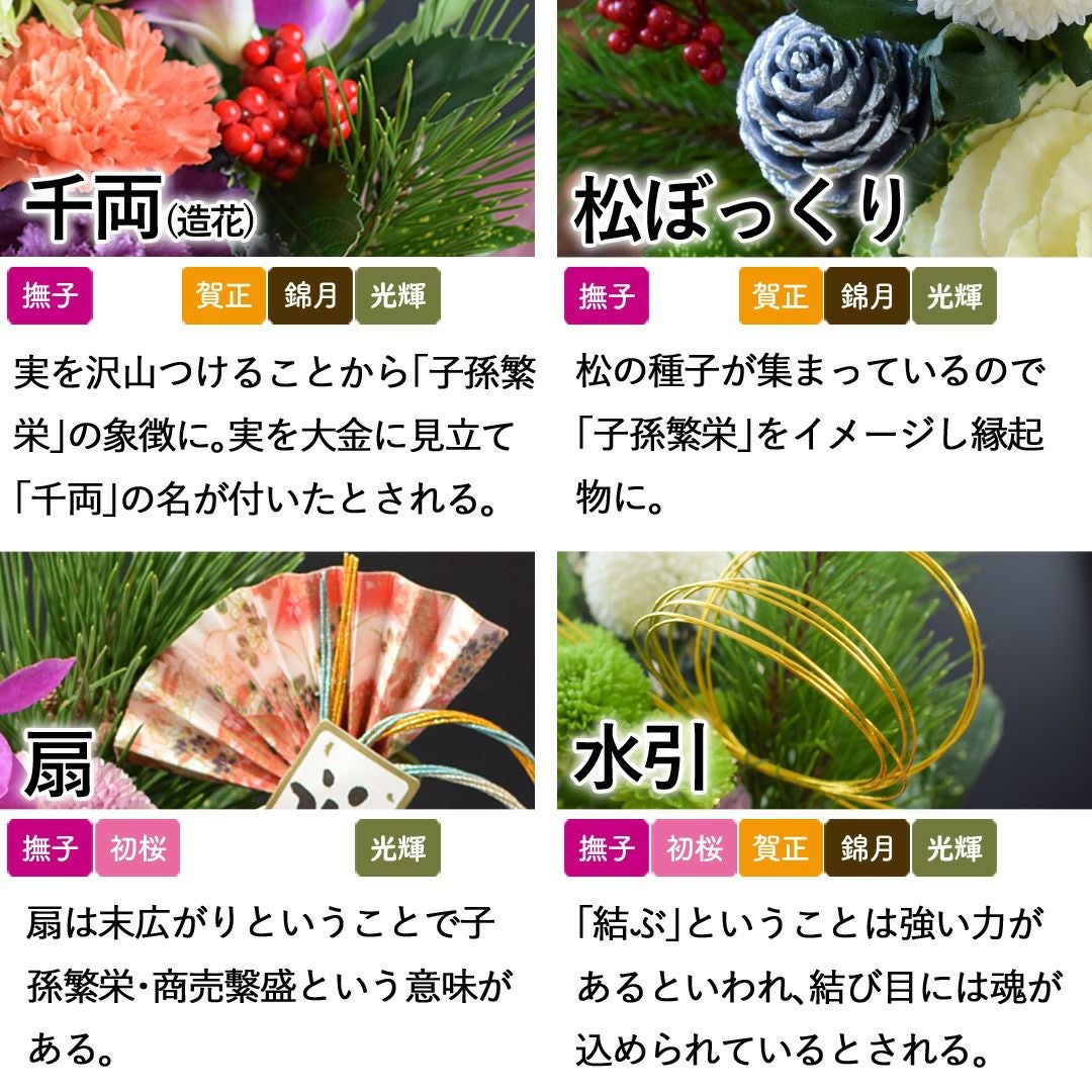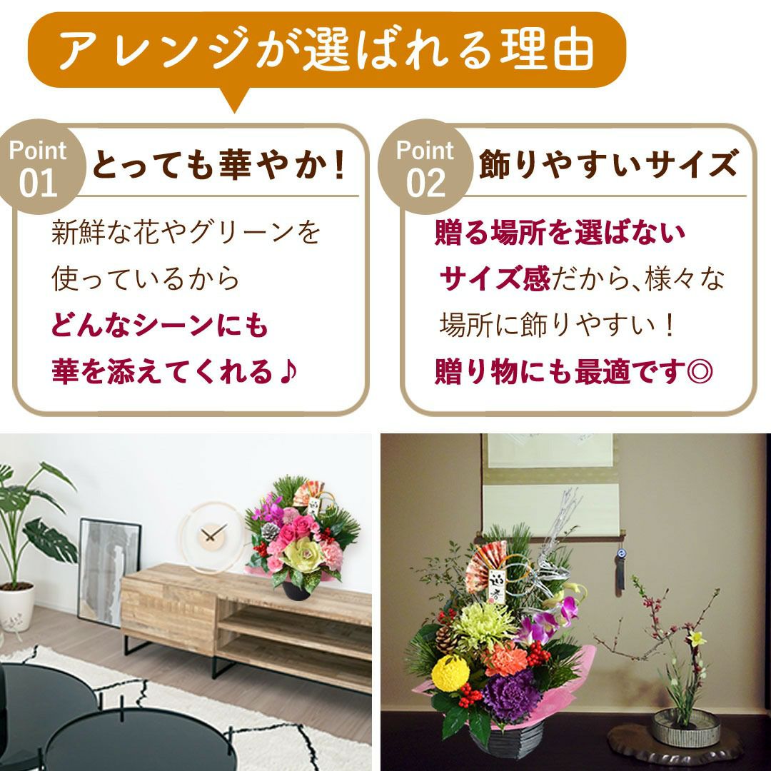 他の画像を見る おしゃれ&モダンなお正月生花アレンジ 正月飾り 2026 お正月 5種から選べる生花アレンジメント 12/28~/31の間にお届け 当店特別価格 ¥ 4,980 税込 会員価格あり Web会員様特別価格 ¥ 4,731 税込 在庫切れ 詳細を見る お気に入りに登録する