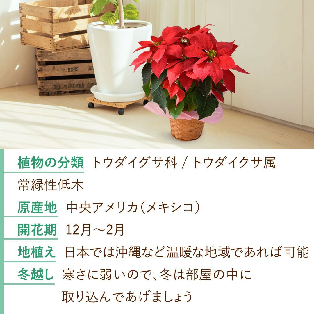 他の画像を見る 送料無料 鉢植え 新品種!大人可愛い プリンセチア 鉢植え ポインセチア 5号鉢 11/15~12/20の間でお届け 送料無料 当店特別価格 ¥ 3,780 税込 会員価格あり Web会員様特別価格 ¥ 3,591 税込 在庫切れ 詳細を見る お気に入りに登録する