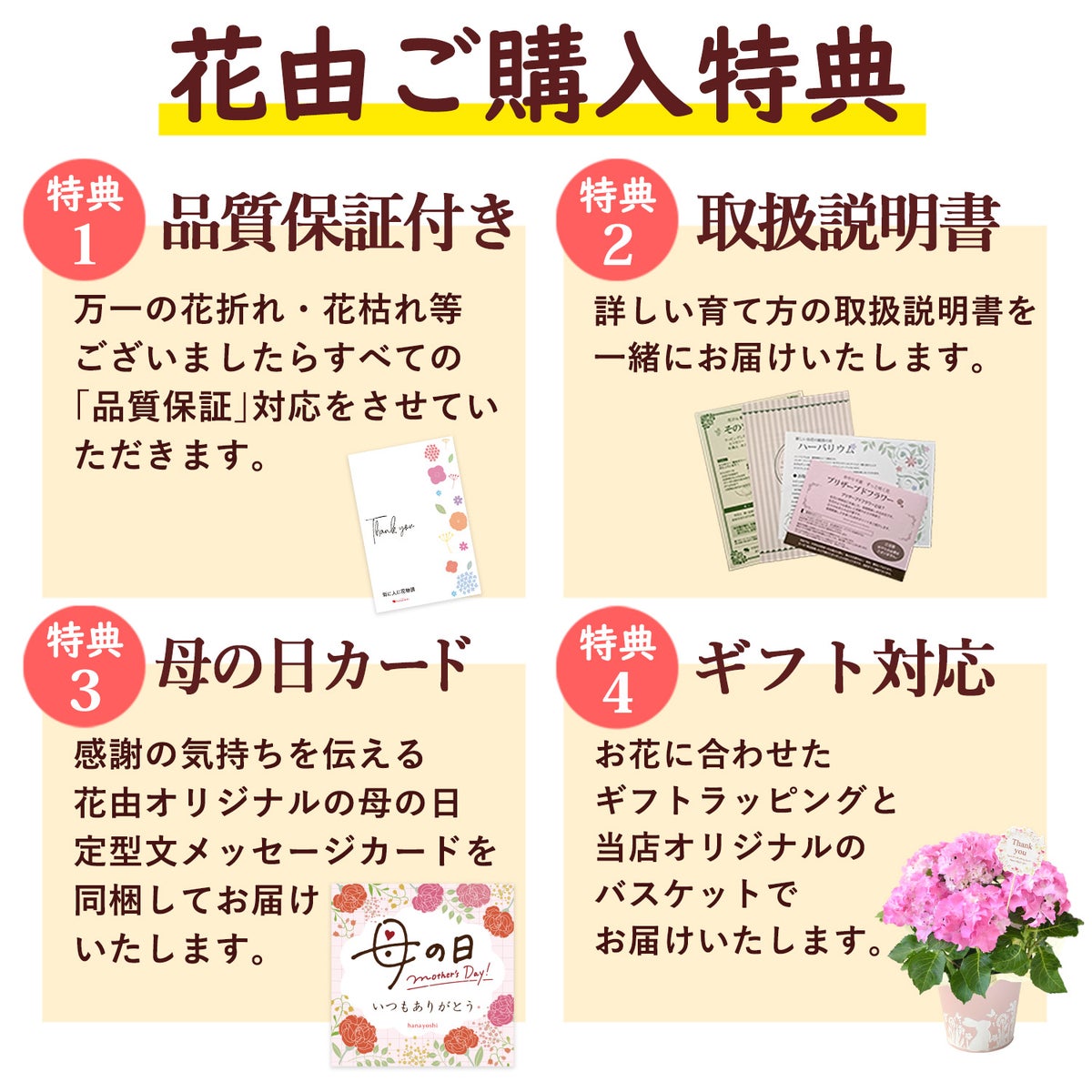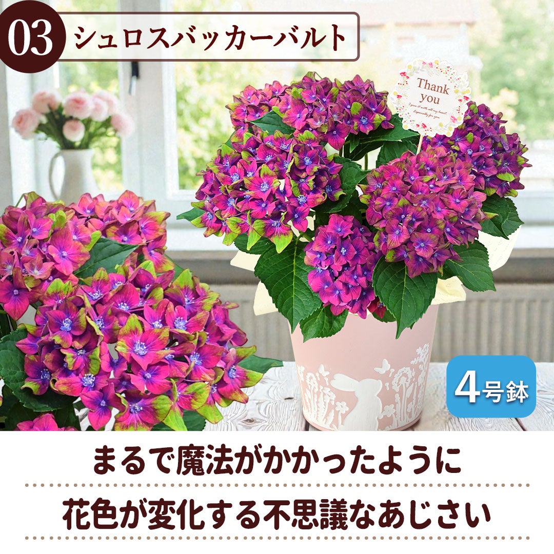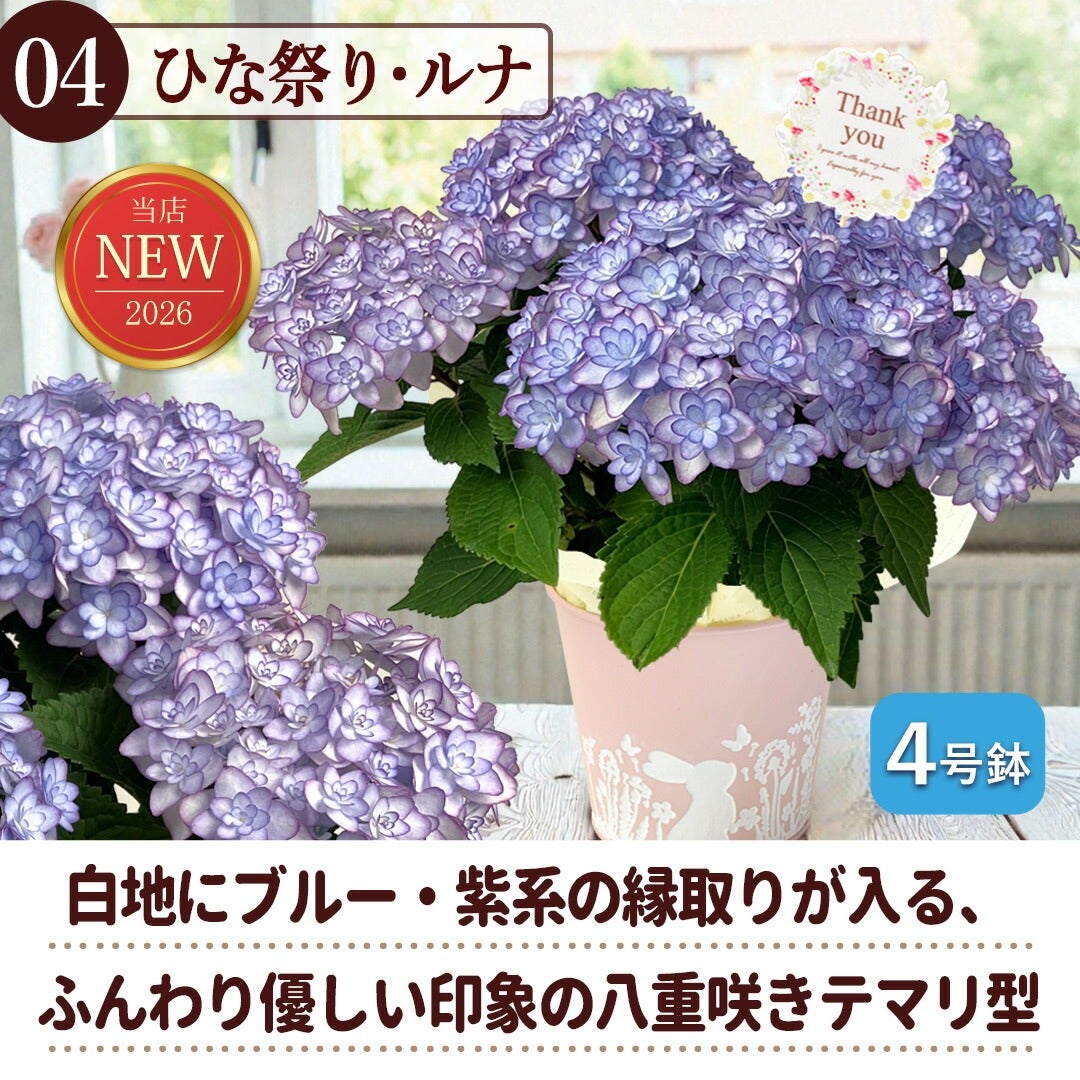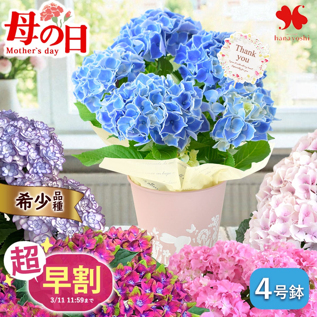 他の画像を見る 送料無料 鉢植え 母の日期間限定 希少品種の中から選べる5種◎ 超早割 母の日 2026 選べる あじさい 4号鉢 inバスケット 紫陽花 アジサイ 鉢植え 花鉢 当店特別価格 ¥ 3,980 税込 詳細を見る お気に入りに登録する