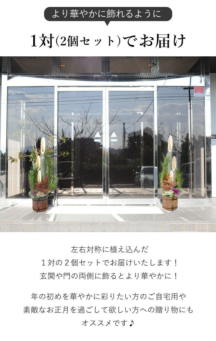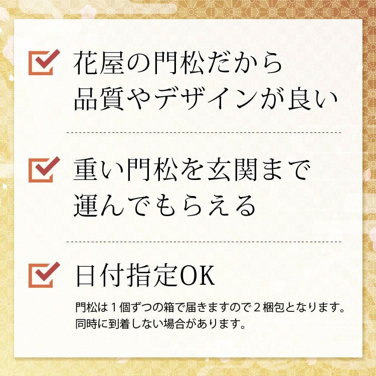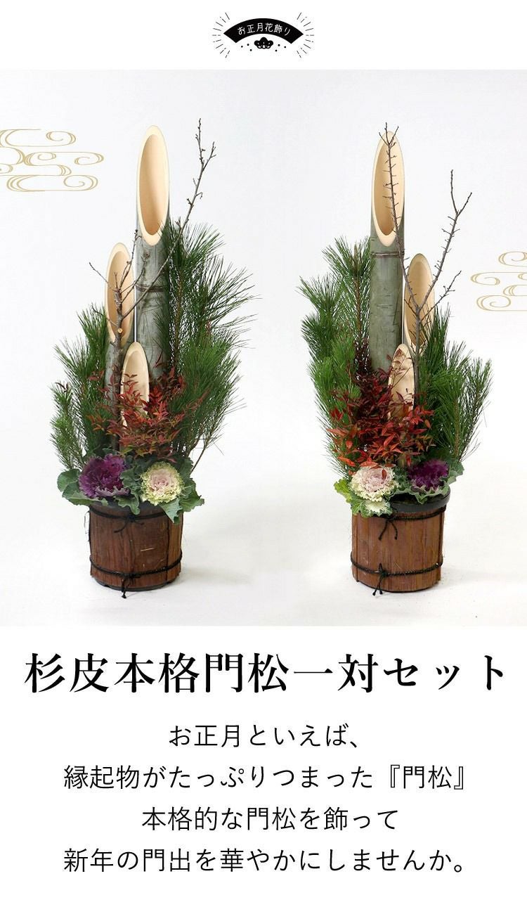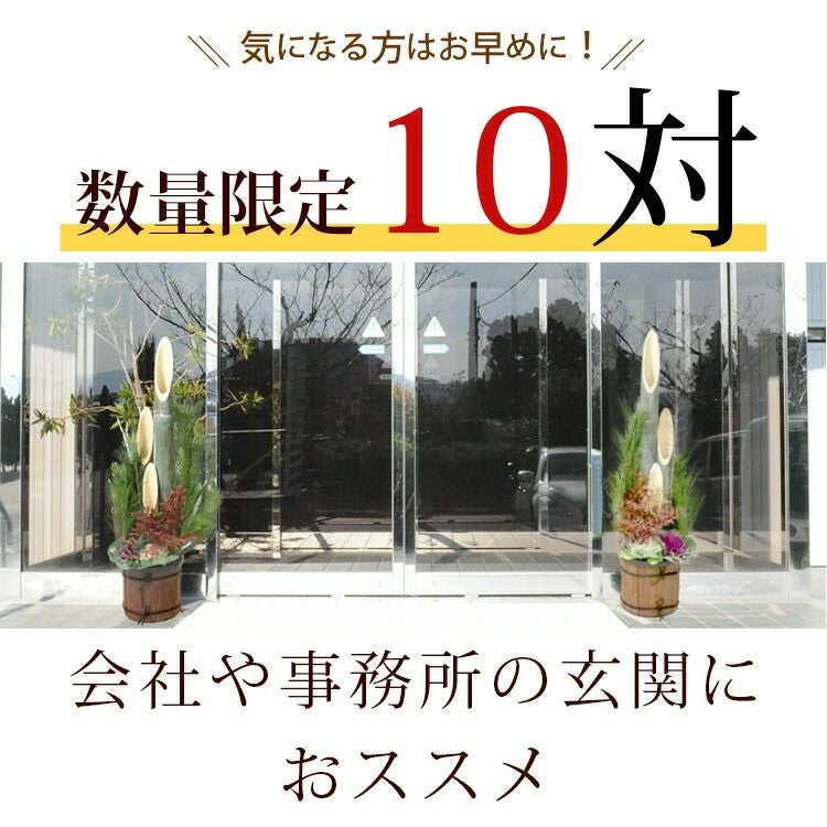 他の画像を見る 送料無料 寄せ植え 年末お届け限定 門松+生け花+寄せ植えの進化したお正月花飾り! お正月 2026 門松 杉皮巻本格門松一対セット 12/26~12/30の間で指定OK! 当店特別価格 ¥ 37,900 税込 会員価格あり Web会員様特別価格 ¥ 36,005 税込 在庫切れ 詳細を見る お気に入りに登録する
