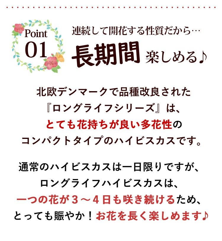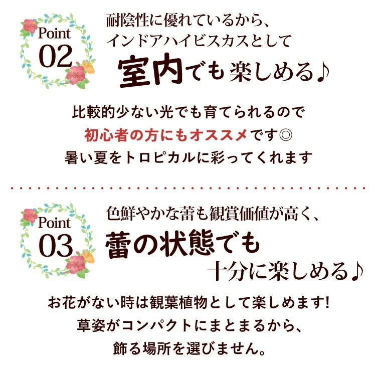 他の画像を見る 送料無料 鉢植え 長く楽しめる!今までにないプレミアム ハイビスカス モリヒロ園芸さんの季節の鉢花 <プラスチック鉢に入れてお届け> 送料無料 ロングライフハイビスカス 花 鉢植え 当店特別価格 ¥ 3,480 税込 会員価格あり Web会員様特別価格 ¥ 3,305 税込 在庫切れ 詳細を見る お気に入りに登録する